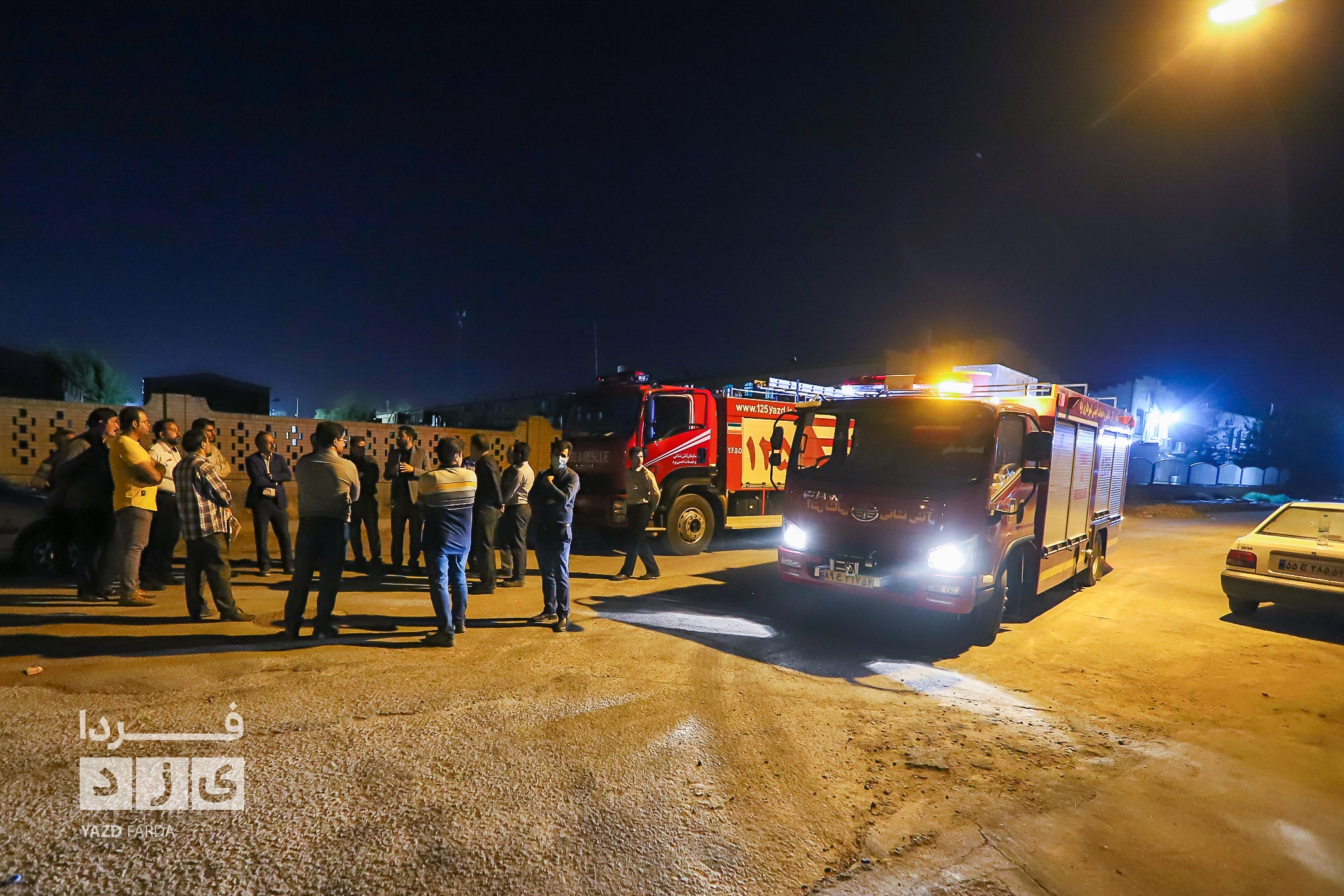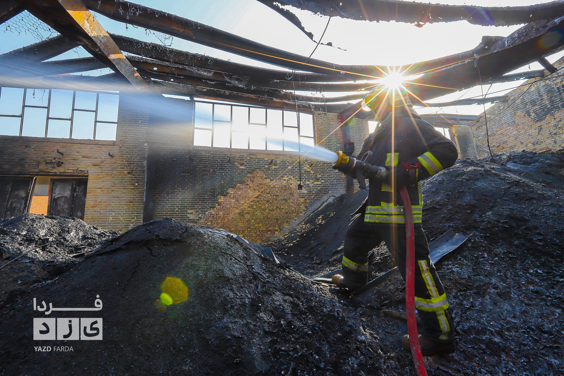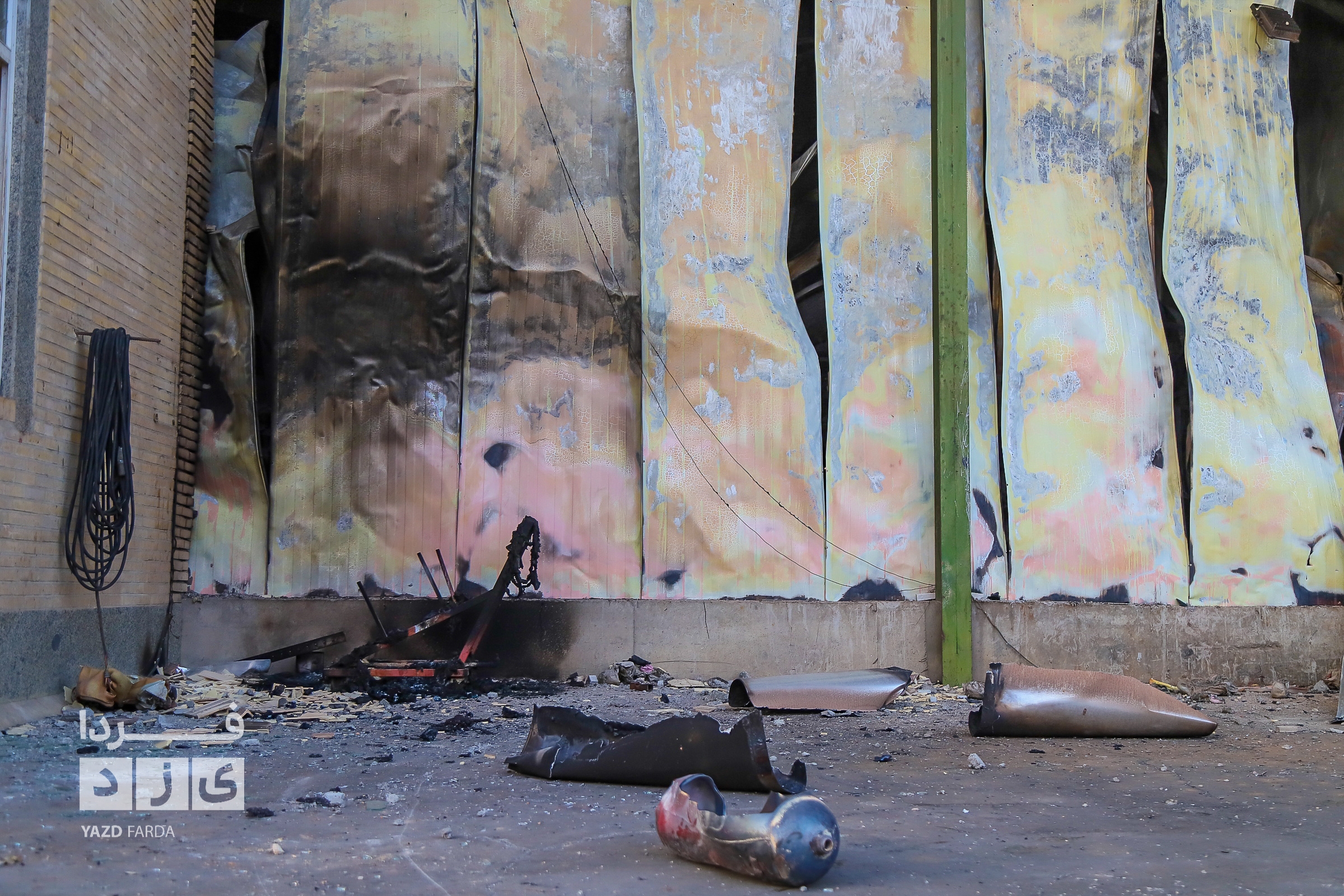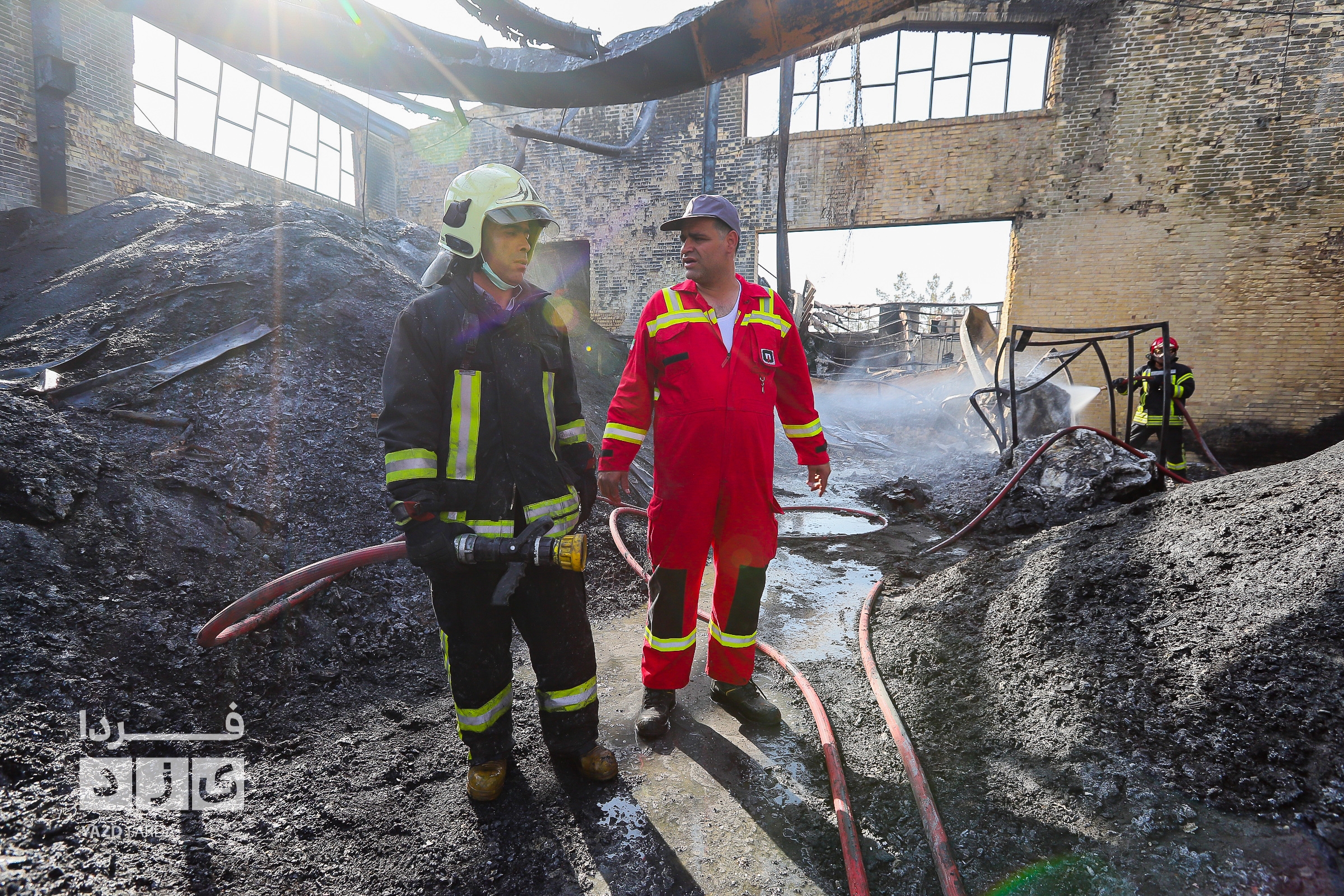 عملیات اطفاء آتش سوزی دوباره سردخانه در شهرک صنعتی و ایمن سازی محل با حضور معاون عمرانی استاندار یزد
