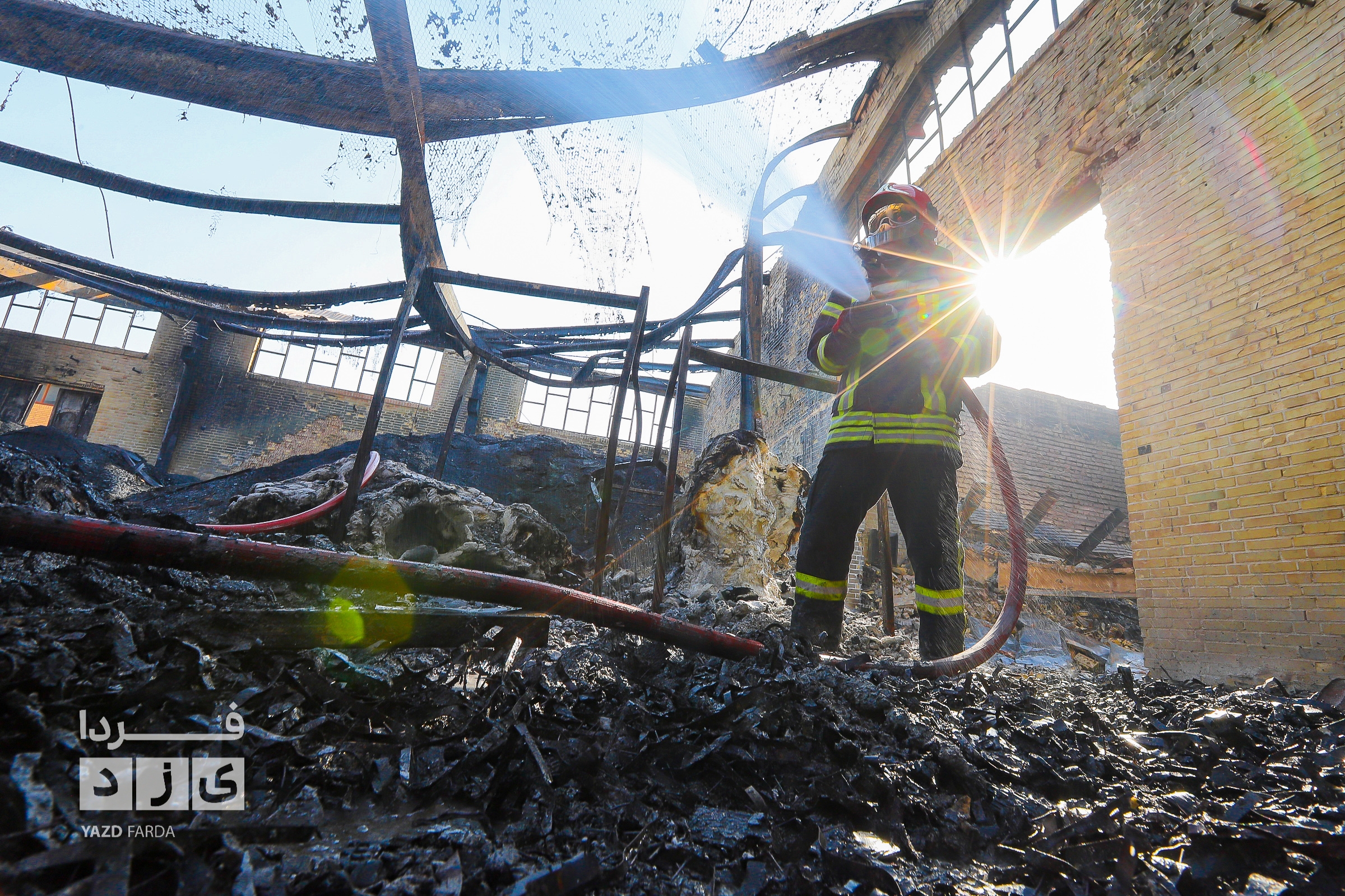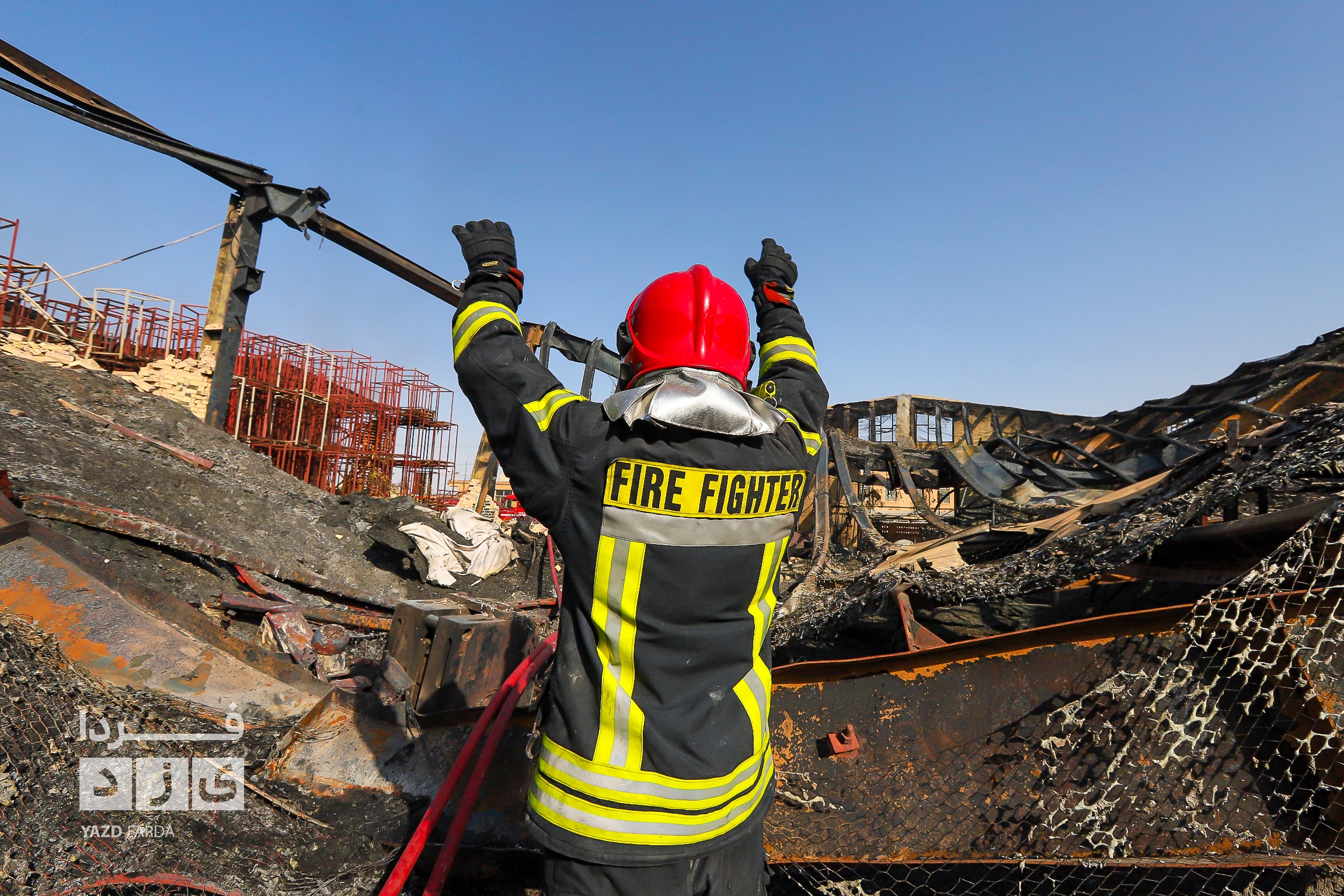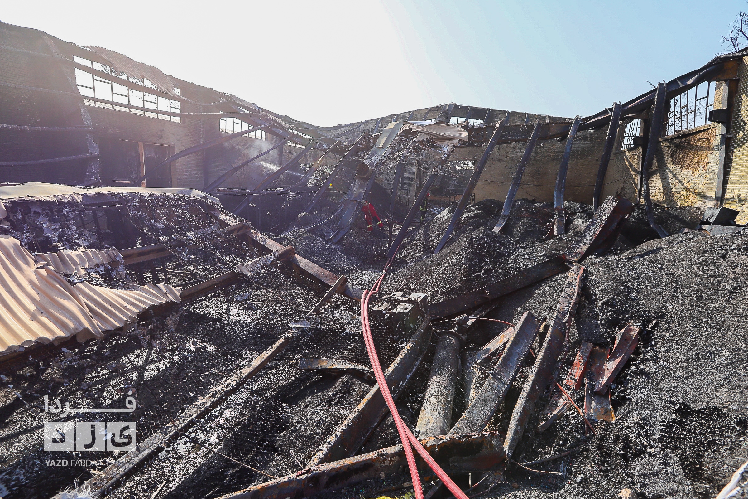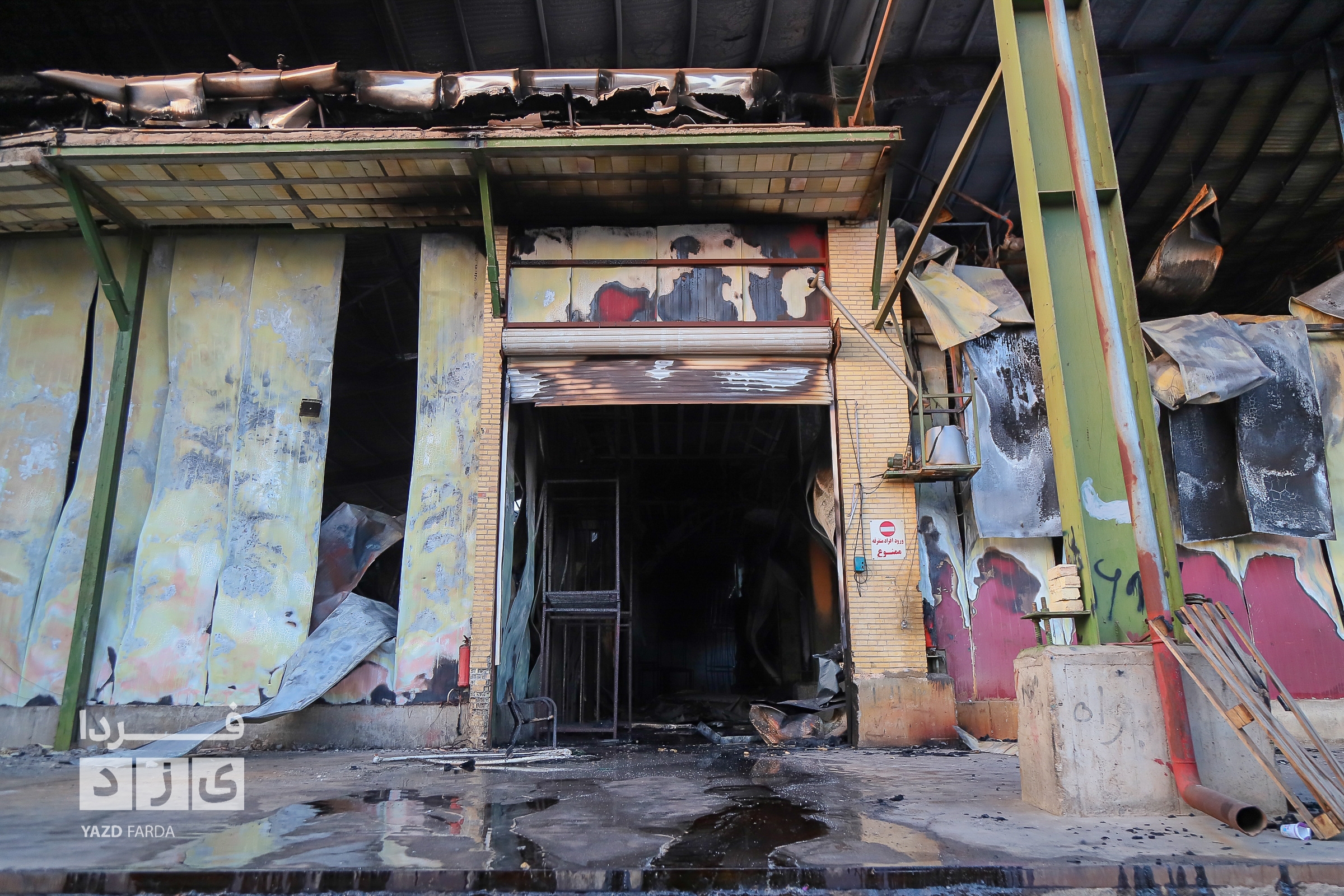 عملیات اطفاء آتش سوزی دوباره سردخانه در شهرک صنعتی و ایمن سازی محل با حضور معاون عمرانی استاندار یزد