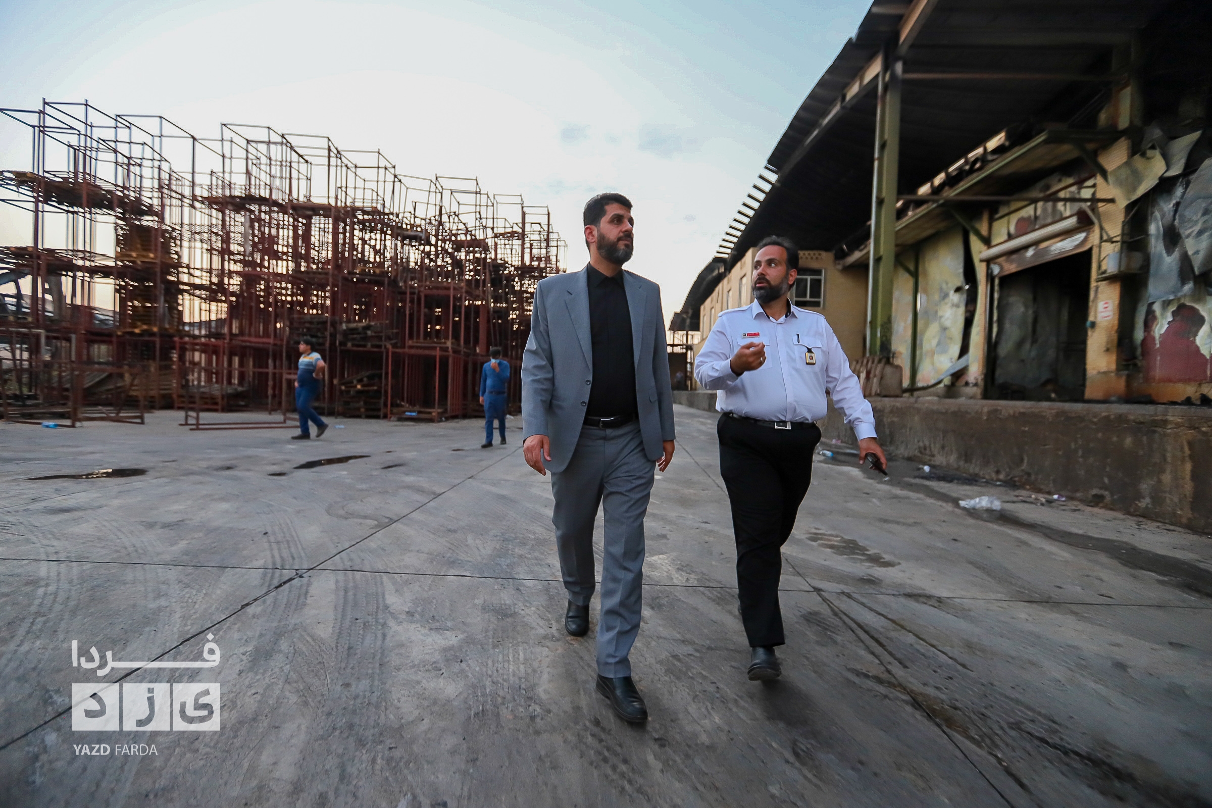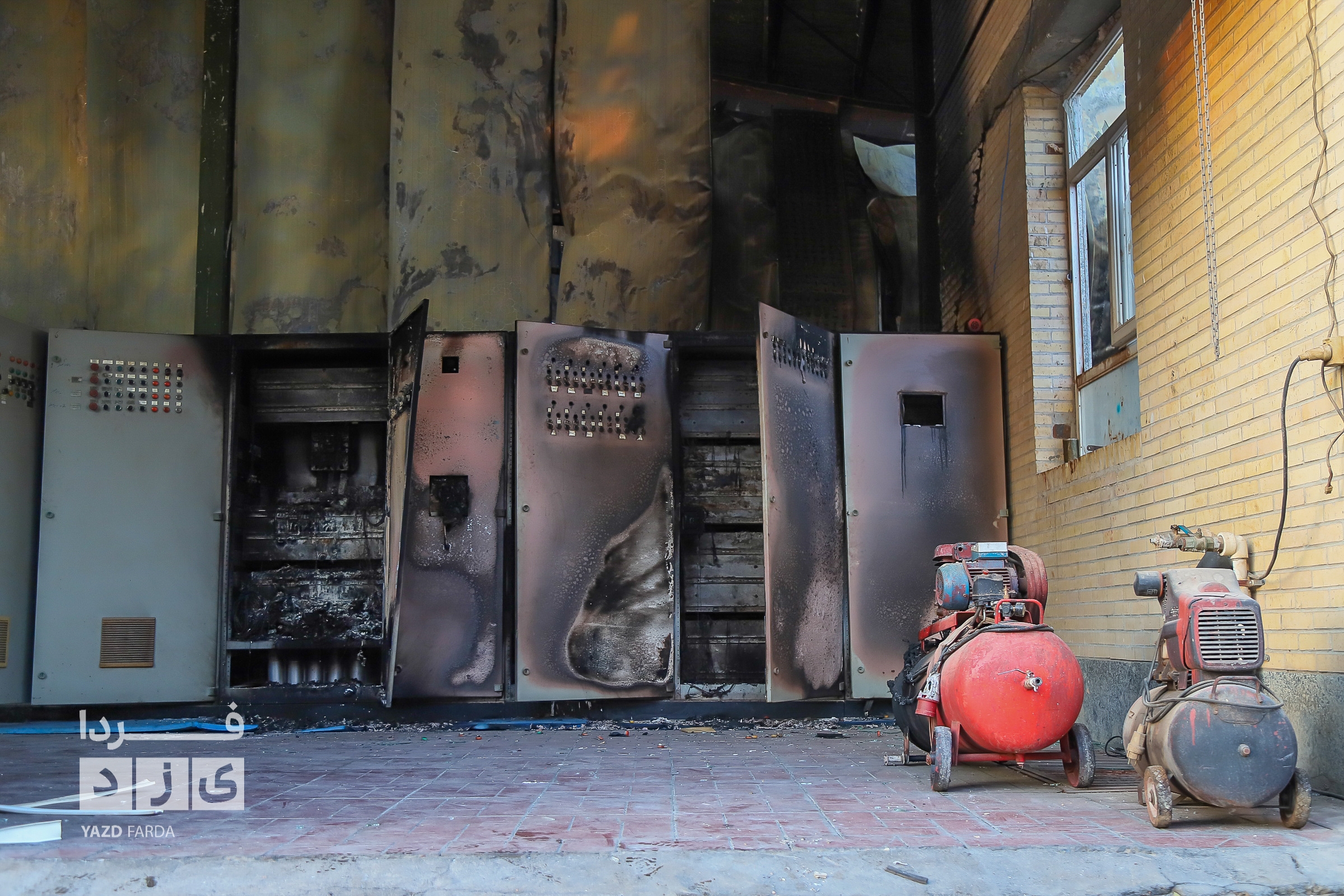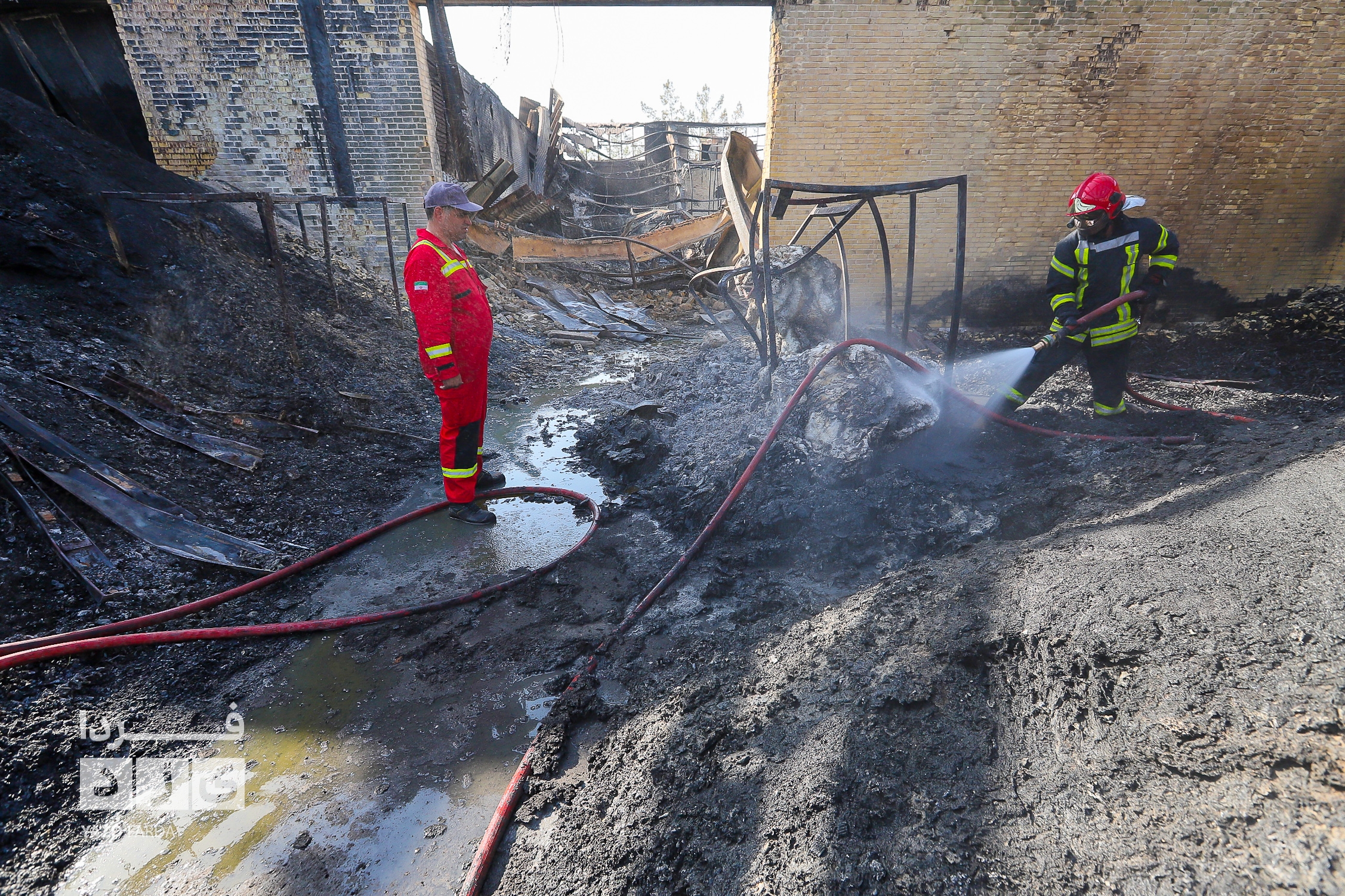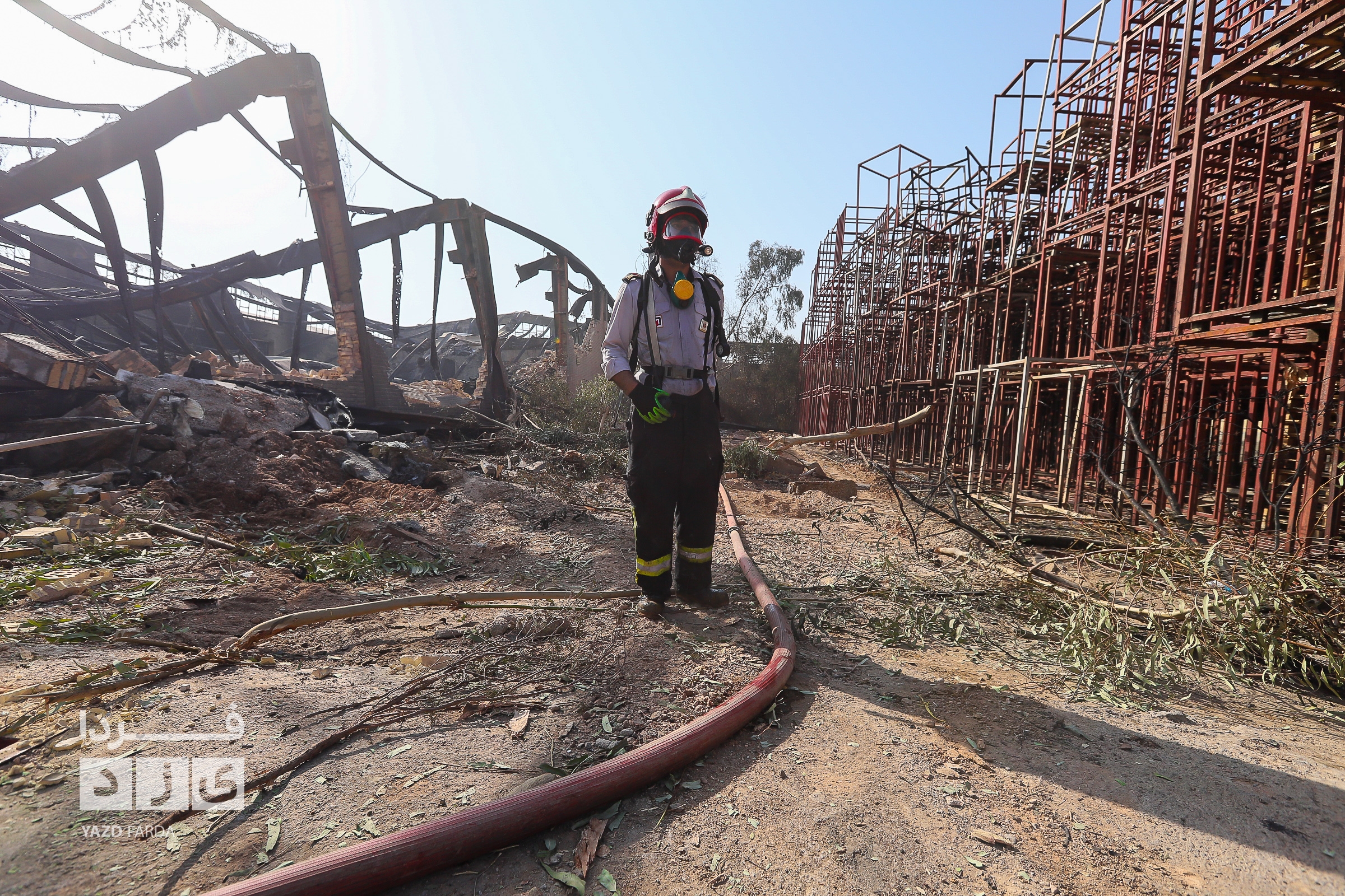 عملیات اطفاء آتش سوزی دوباره سردخانه در شهرک صنعتی و ایمن سازی محل با حضور معاون عمرانی استاندار یزد
