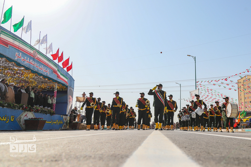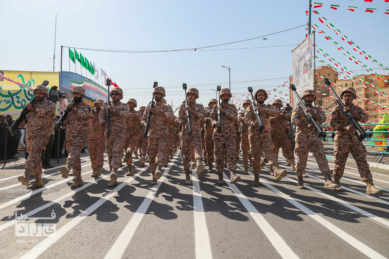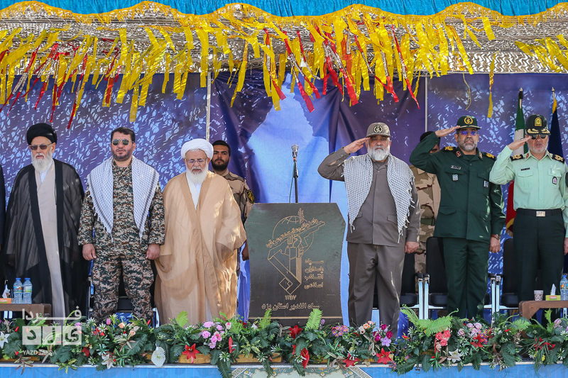 یزدفردا: به مناسبت آغاز هفته دفاع مقدس همزمان با سراسر کشور، رژه یگانهای نمونه نیروهای مسلح استان یزد با حضور سردار پاسدار «محمد رضا نقدی» معاون هماهنگ کننده سپاه پاسداران انقلاب اسلامی برگزار شد.