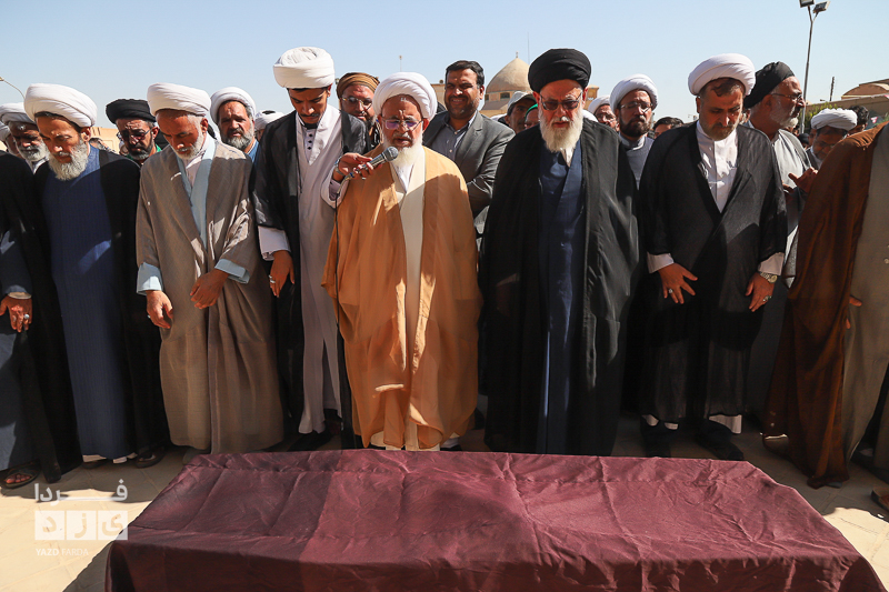 صبح امروز دوشنبه مراسم تشییع و وداع با فقیه عالی قدر سید جلیل صدر طباطبایی همراه با اقامه نماز بر پیکر پاک آن مرحوم با حضور اقشار مردم و روحانیون در مدرسه مصلی یزد برگزار شد.
