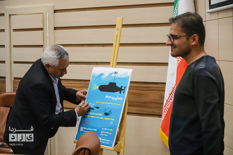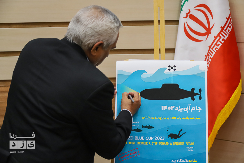 در آستانه برگزاری گام دوم مسابقات کشوری جام آبی ( رباتهای زیردریایی) نشست خبری «عباس کلانتری» رییس دانشگاه یزد و «محمد هادی هنرور» دبیر این مسابقات روز یکشنبه ۲۱ آبان ماه با حضور اصحاب رسانه در محل این دانشگاه برگزار شد.
