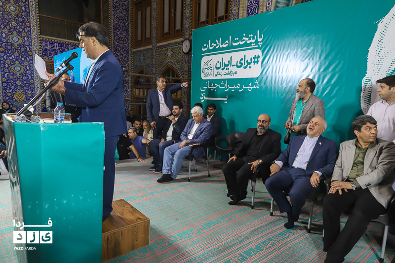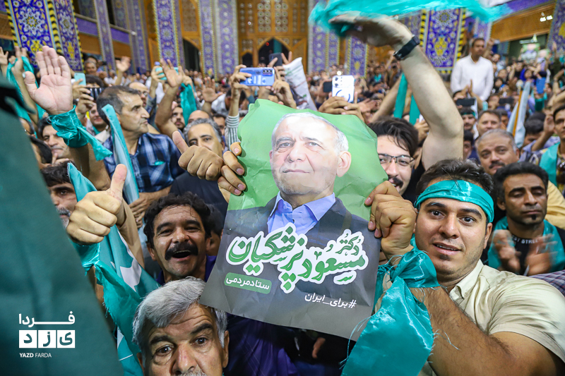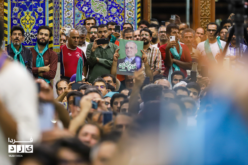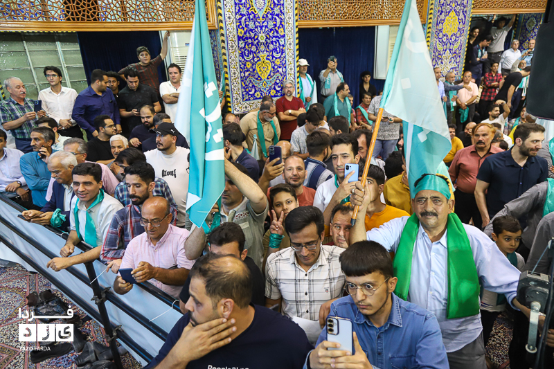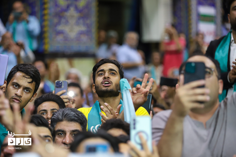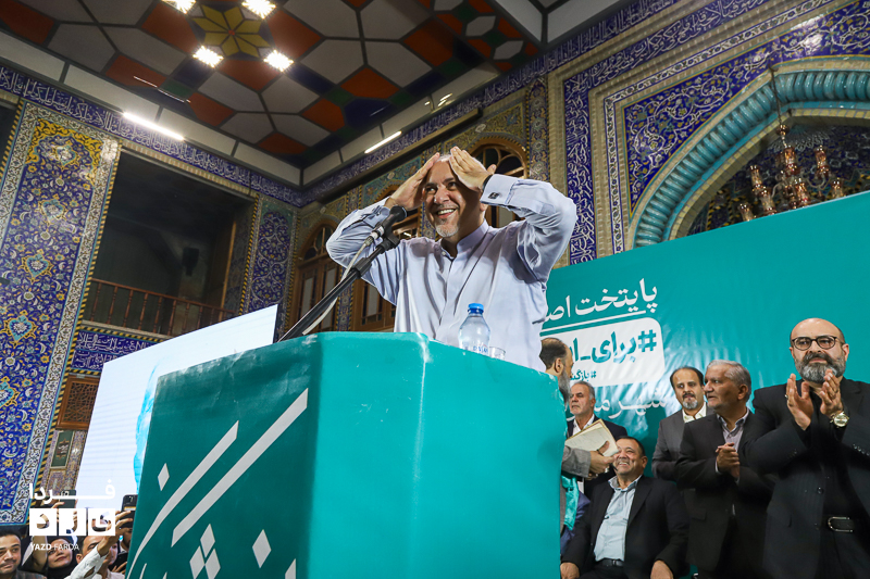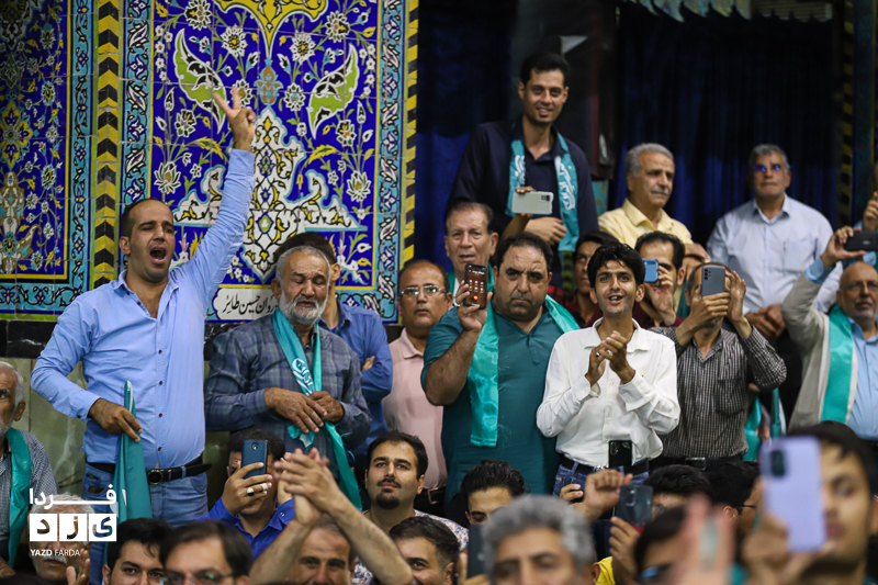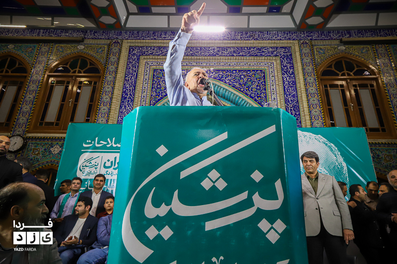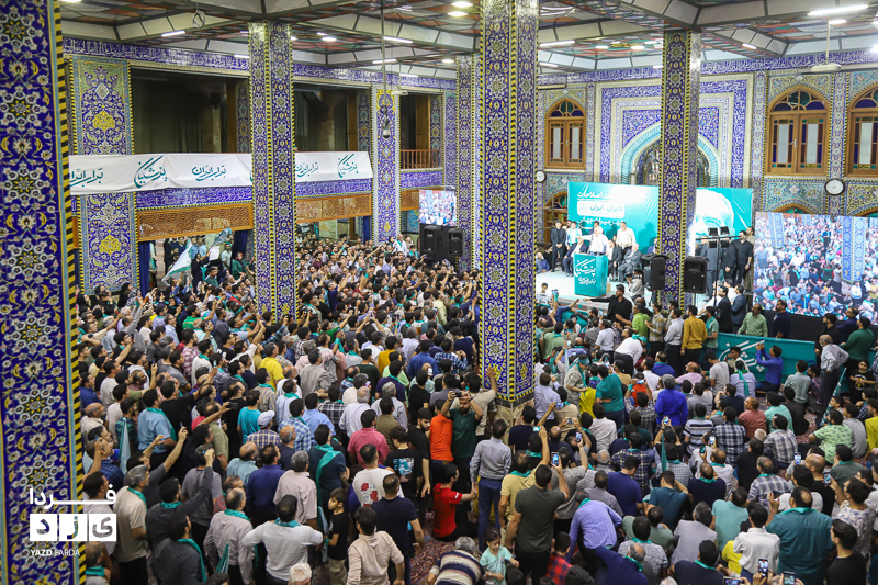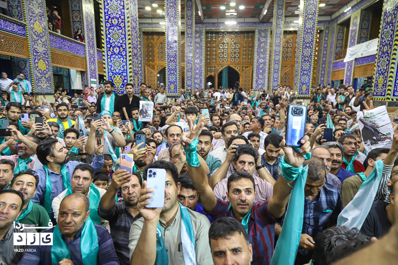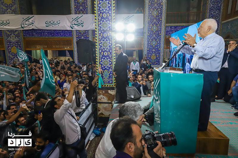 محمد جواد ظریف وزیر امور خارجه سابق ایران، عصر امروز چهارشنبه ۱۳ تیرماه ۱۴۰۳ در جمع هواداران دکتر پزشکیان، کاندیدای چهاردهمین دوره انتخابات ریاست جمهوری در مسجد روضه محمدیه (حظیره) یزد به سخنرانی پرداخت.