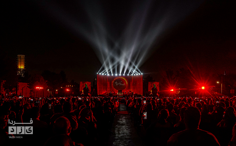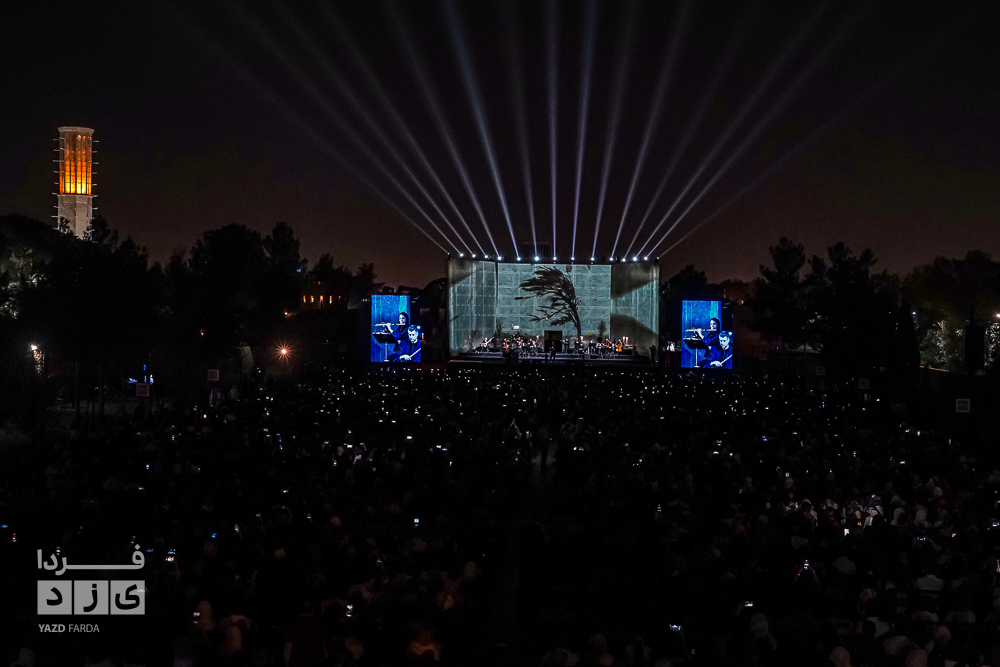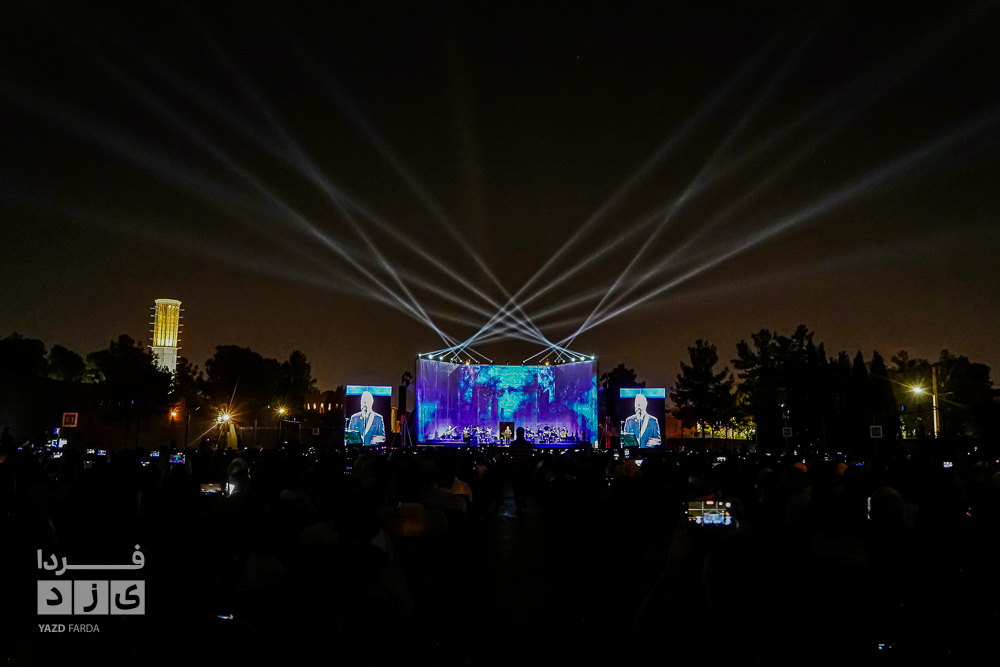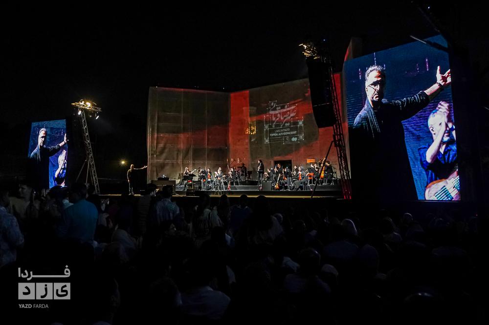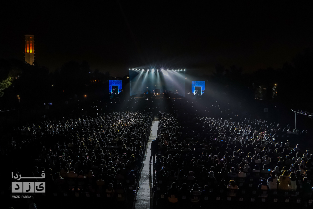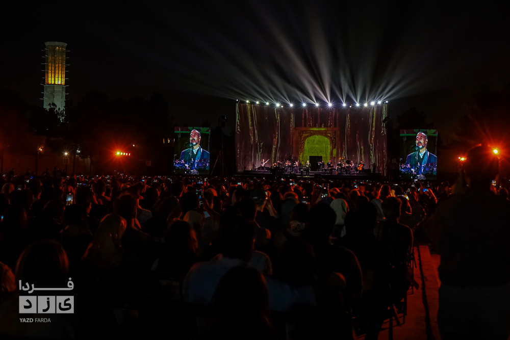 کنسرت ایرانم با صدای علیرضا قربانی در فضای باز باغ جهانی دولت آباد یزد در حال برگزاری است.
