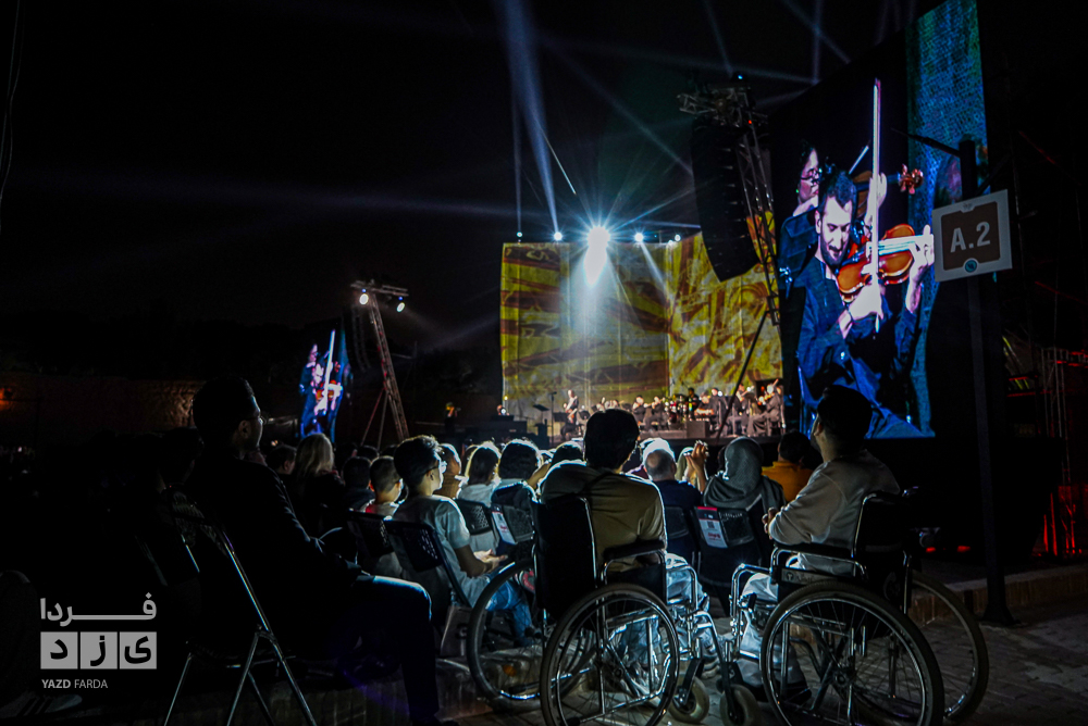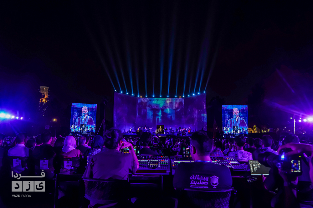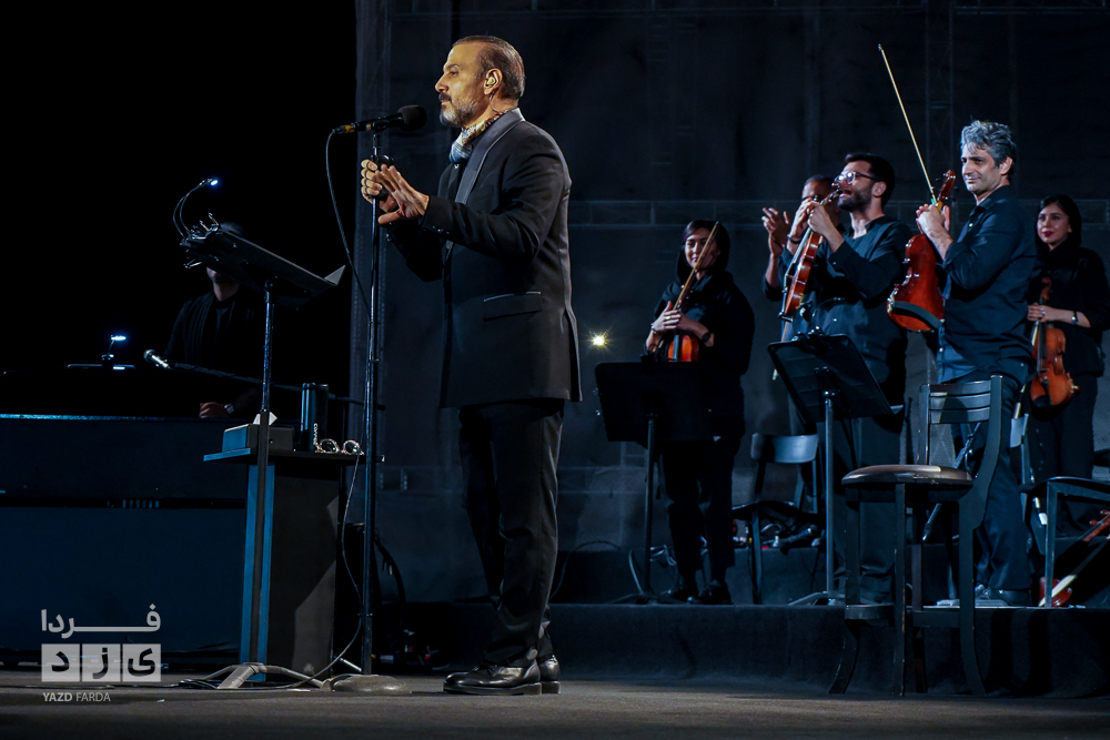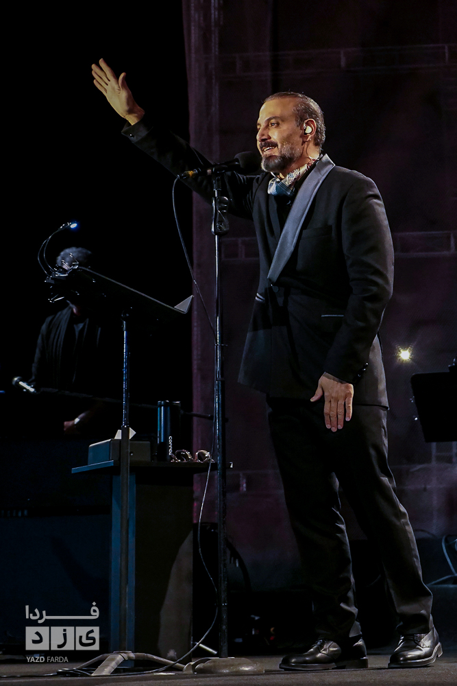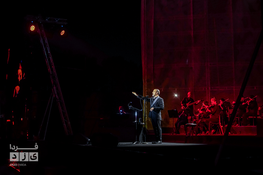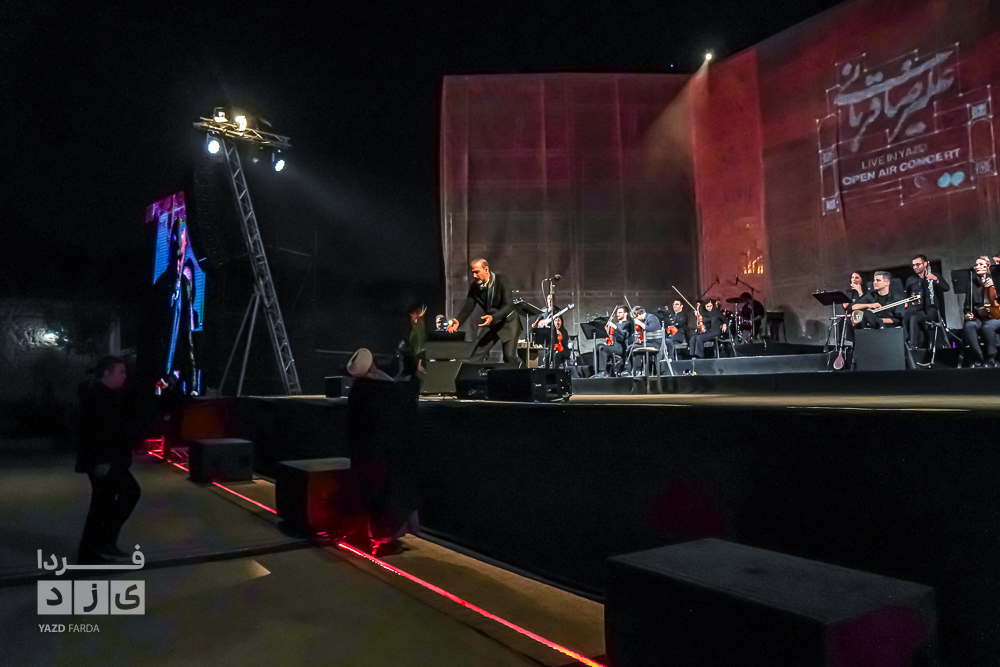 کنسرت ایرانم با صدای علیرضا قربانی در فضای باز باغ جهانی دولت آباد یزد در حال برگزاری است.