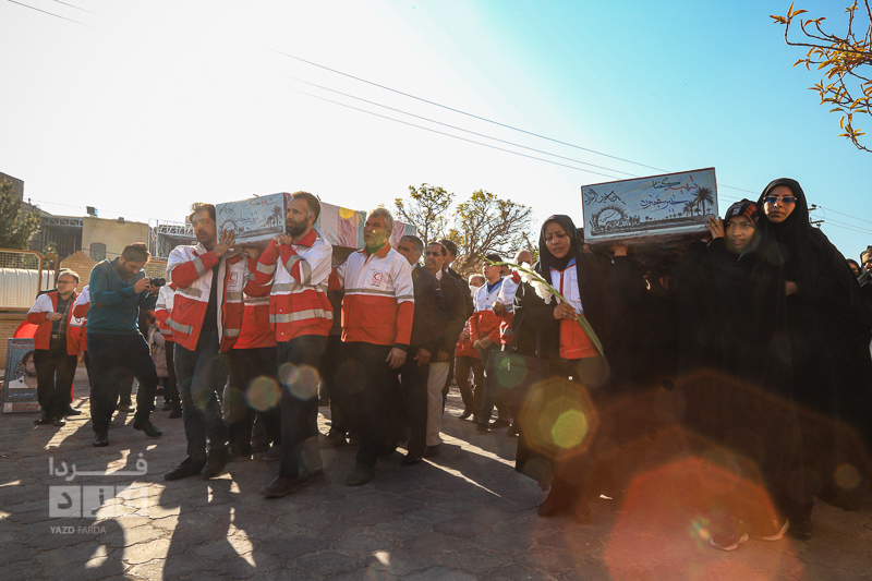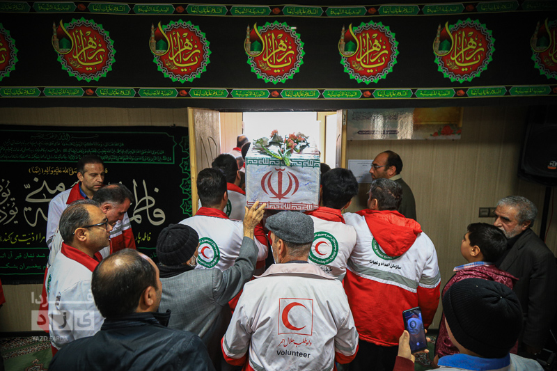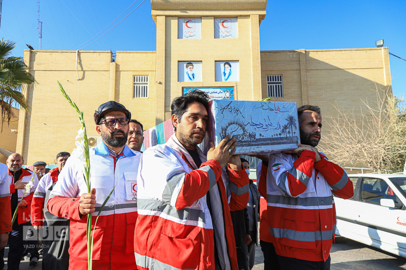در آستانه فرا رسیدن سالروز شهادت حضرت زهرا(س)، مراسم استقبال از پیکر دو شهید گمنام در جمعیت هلال احمر با حضور مدیرعامل و مسئول نماینده ولی فقیه ،پرسنل و اعضا ، جوانان ،امدادگران و داوطلبان جمعیت هلال احمر استان یزد در نمازخانه ساختمان ستاد این جمعیت برگزار شد.