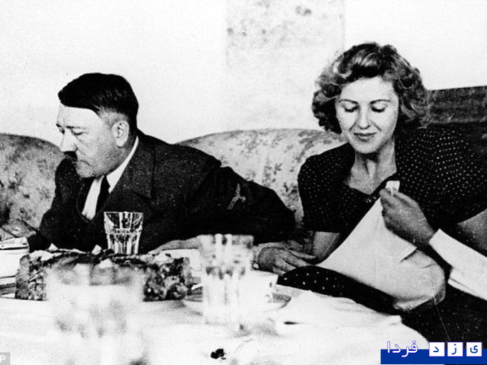 عکسی از هیتلر در حال صرف غذا با اوا براوون، معشوقه اش: او معمولا 45 دقیقه بعد از چشیدن آزمایشی غذایش صبر می کرد تا از زهرآگین نبودن غذایش مطمئن شود.