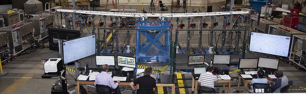 اریک میلر ، هادی آزمایش آرمسترانگ ، توضیح داد: تجهیزات آزمایشگاهی که برای اطمینان از بال برای آزمایش بالایی طراحی شده اند ، شامل 30 محرک هیدرولیک مورد استفاده برای اعمال بار بر بال است. در یک آزمایشی که چند ساعت طول کشید تا آماده شود ، محققان 26 محرک هیدرولیک - 13 در هر طرف - را با قرار دادن لنت ها به سمت بال بال قرار دادند. در همین زمان ، نوارهای بال به چهار محرک اضافی برای شبیه سازی نیروهای بی تحرکی و رانش ناشی از موتورهای کروز 134 پوندی که در پیکربندی بال نهایی قرار دارند متصل شد.