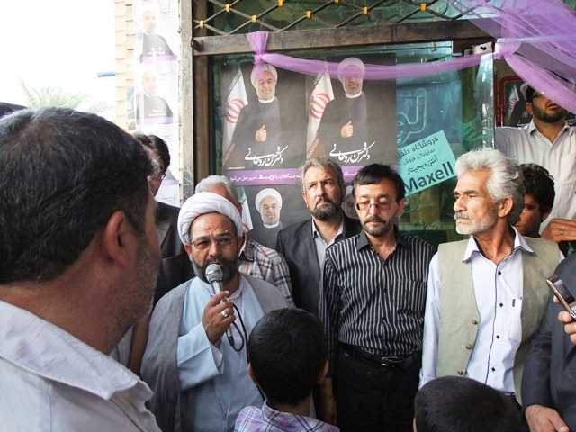 طبس- سعید قلی زاده- سرویس عکس یزدفردا/ حجت الاسلام حیدرزاده در زمان تجمع مردمی مقابل ستاد حجت الاسلام و المسلمین دکتر حسن روحانی با تشکر از ستاد دکتر عارف ایشان را یکی از اصلاح طلبان معزز برشمرد که با انصراف خود و حمایت از آقای روحانی خدمت بزرگی به جامعه اصلاحات کرد.