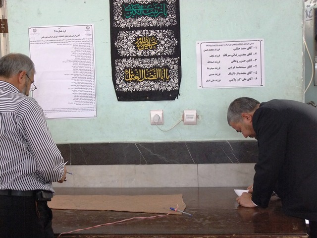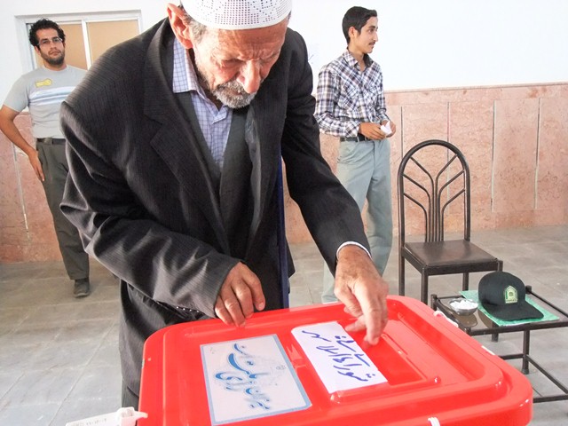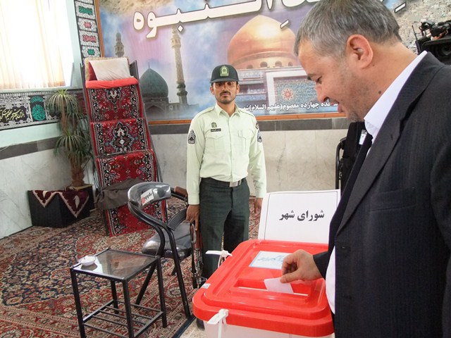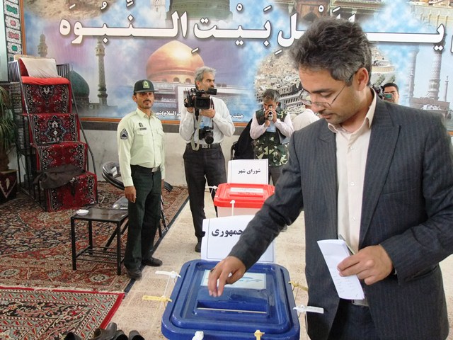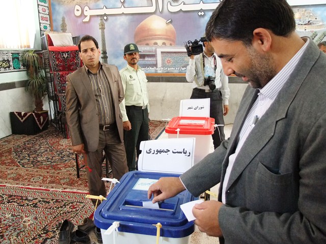 طبس- حقانی- سرپرستی یزدفردا/ حجتالاسلام سید ابراهیم مهاجریان مقدم امام جمعه و احمد طالبیان مقدم معاون استاندار و فرماندار ویژه شهرستان طبس در ساعات اولیه آغاز انتخابات با حضور در شعبه 8 اخذ رأی مستقر در هیئت چهارده معصوم(ع) این شهر، در انتخابات یازدهمین دوره ریاست جمهوری و چهارمین دوره شورای اسلامی شهر طبس شرکت کرده و آرای خود را به صندوق ریختند.