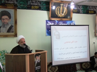 طبس- خبرنگار یزدفردا/ مدیر حوزه ریاست شورای سیاست گذاری ائمه جمعه کشور در نشست مشاوران امام جمعه طبس گفت: نماز جمعه یک فرصت و ظرفیت والای اجتماعی، سیاسی، معنوی است که نظام مقدس جمهوری اسلامی ایران به برکت خون شهدا و رهنمودهای مدبرانه امام راحل(ره) و مقام معظم رهبری ایجاد کرده است.