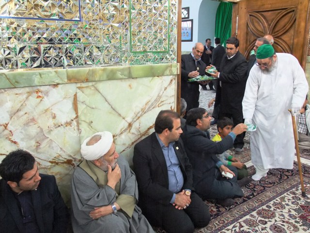 این مراسم با نوای دلنشین حاج "رضا آتش فراز" مداح اهل بیت(ع) از اعضاء مجمعالذاکرین آستان مبارک ادامه یافت و در پایان زائران و مجاوران پذیرایی شده و نبات متبرک به آنها اهدا شد.