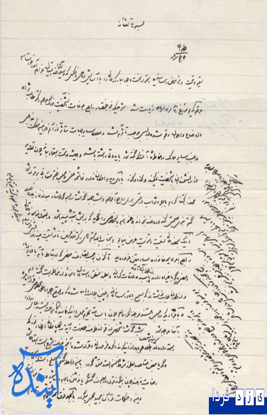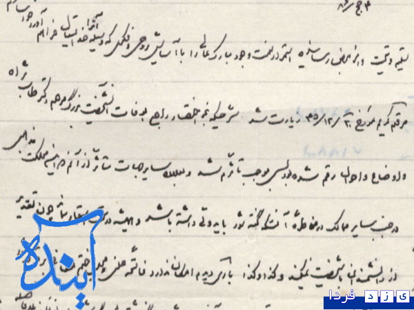 «تسلیم و تحیت وافر به عرض رسانیده، استمرار نعمت وجود مبارک عالی را با آسایش روحی و فکری که وسیله آن را خدای متعال فراهم آورد، خواستارم.