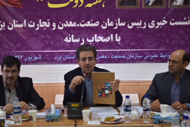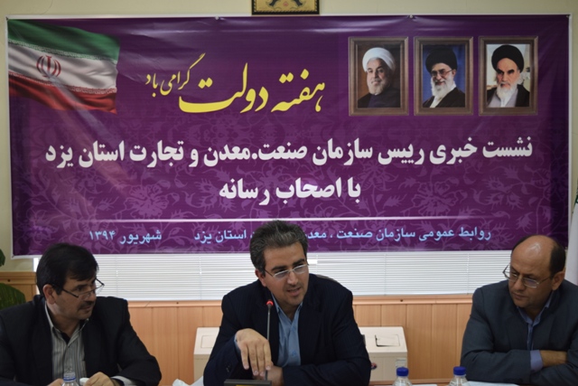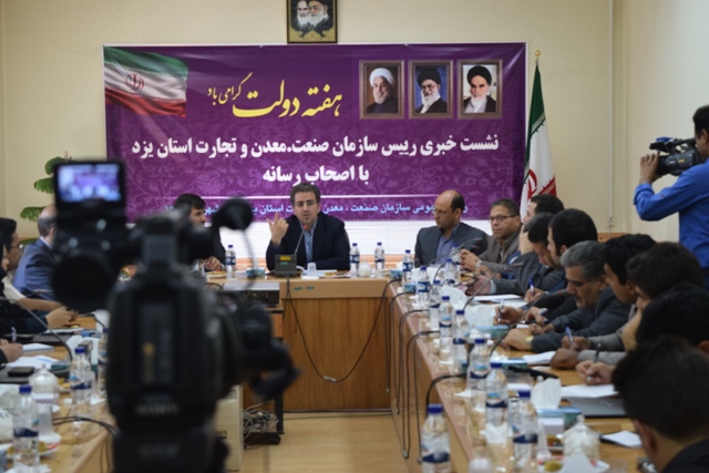 یزدفردا،به مناسبت گرامیداشت هفته دولت (تدبیر وامید) نشست خبری محمد رضا علمدار یزدی ریاست سازمان با اصحاب رسانه امروز پنج شنبه 05/ 06/ 94در محل سالن جلسات سازمان صنعت،معدن و تجارت استان یزد برگزار گردید.