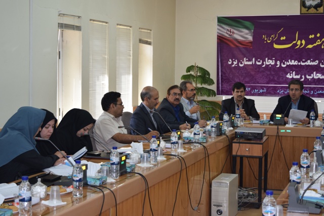 بنابر این گزارش در این نشست که با حضور خبرگزاریها ، رسانه های محلی و صدا وسیما برگزار گردید محمد رضا علمدار یزدی رئیس سازمان صنعت،معدن و تجارت استان ضمن خوش آمد گویی و تبریک گرامیداشت هفته دولت و یاد وخاطره شهیدان رجایی و باهنر به تشریح فعالیتها و عملکرد بخش های مختلف سازمان پرداخت.