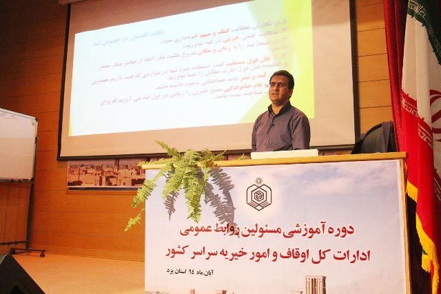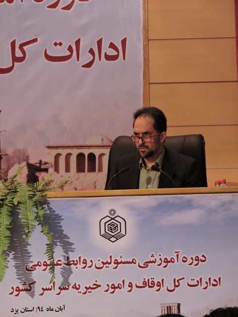 دوره آموزشی مسئولان روابط عمومی های ادارات اوقاف و امور خیریه سراسر کشور از روز شنبه هفته جاری در استان یزد آغاز و شب گذشته پایان یافت.