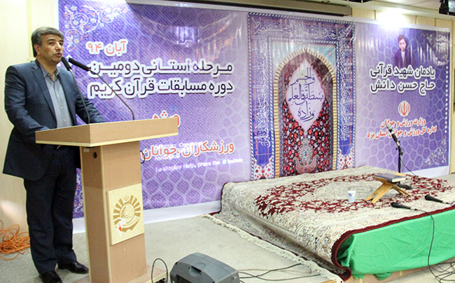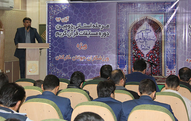 مراسم افتتاحیه مرحله استانی دومین دوره مسابقات قرآن کریم ویژه ورزشکاران ، جوانان و کارکنان ادارات ورزش و جوانان یادمان شهید قرآنی حاج حسن دانش با حضور معاون سیاسی امنیتی و اجتماعی استاندار یزد و مدیرکل ورزش و جوانان استان برگزار شد.