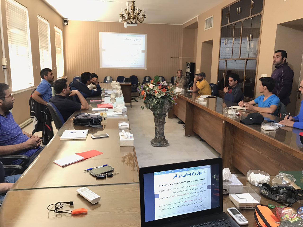 مجیبی فر بیان کرد : همچنین مباحث عملی این دوره در غار شیدور واقع در جاده تنگ چنار شهرستان مهریز بمدت یک روز باحضور همه اعضا و تجهیزات لازم برگزار شد.