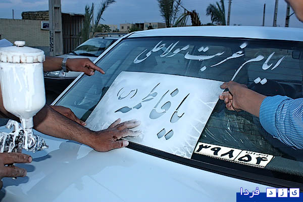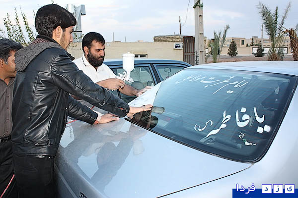 سازمان فرهنگی ورزشی شهرداری یزد به مناسبت فرارسیدن ایام سوگواری حضرت فاطمه زهرا(س) اقدام به پشت­ نویسی اتومبیل های شهروندان  یزدی  نمود.