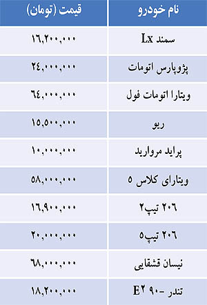 قيمت خودروهاي داخلي و خارجی/ جدول