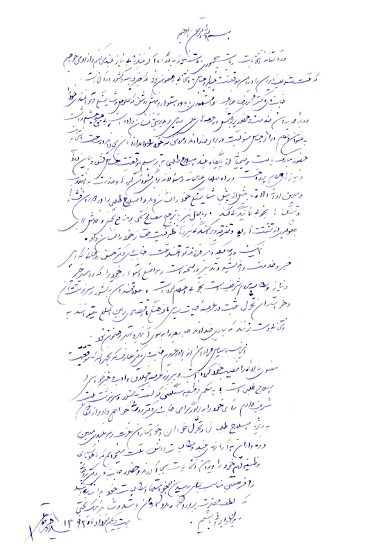 "جناب آقای دکتر محمدرضا عارف، دانشمندی با باور استوار و بینش روشن که خلوص و شایستگی و توانمندی خود را در همه دوران خدمت و حضور پربرکتش در عرصه های علمی، سیاسی و مدیریتی نشان داده است، بی هیچ چشم داشت، به عنوان و مقام، در اثر احساس مسؤولیت در برابر خداوند و مردمی که خود را وامدار آنان می داند در ساحت انتخابات حضور مبارک یافت و صمیمانه از پایگاه بلند اصلاح طلبی به ترسیم موقعیت حساس کشور و بیان دردها و نیازهای مردم پرداخت و راه حل های عالمانه و مسؤولانه برای گشودن گره ها و خدمت به انقلاب و میهن ارائه داده تا بیش از پیش شایستگی خود را نشان دهد و اصلاح طلبی را در دوران فشارها و تنگناها به خوبی نمایندگی کند. و بالمال نیز با ترجیح مصالح کلی بر منافع شخصی و تلاش برای جلوگیری از تشتت آراء و تفرقه و پراکندگی نیروها ظرفیت ممتاز خود را نشان داد." |