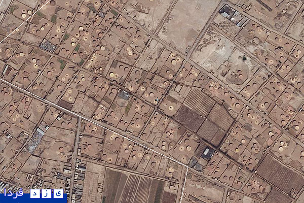 دایره های موجود در عکس هوایی زیر هر کدام مربوط به یک کوره آجر پزی می باشد.(فقط به تعداد دایره ها توجه کنید؛ این قسمت کوچکی از تصویر اصلی است)