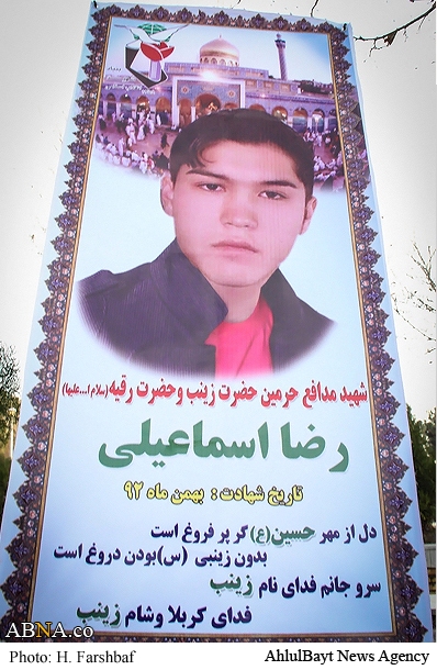 شهید رضا اسماعیلی از شیعیان افغانستانی مقیم ایران بود که در سن 20 سالگی با عضویت در گردان فاطمیون و در صیانت از مقدسات اسلامی توسط تروریستهای تکفیری به شهادت رسید.