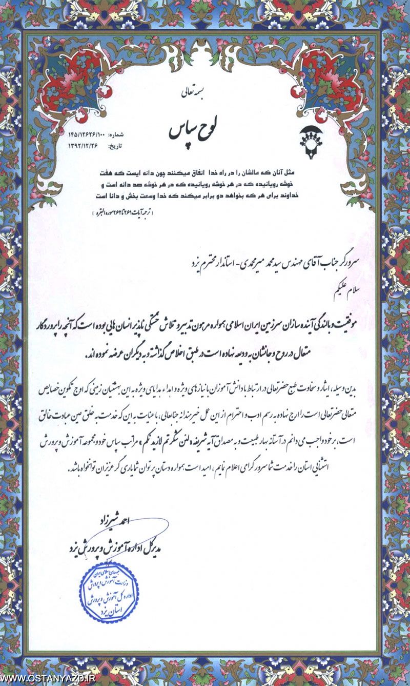 در پي اين اقدام مدير كل اداره آموزش و پرورش استان و رييس اداره آموزش و پرورش استثنايي استان با حضور در دفتر كار استاندار، با اهدا لوح تقدير از اين امر انسان دوستانه تشكر كردند.