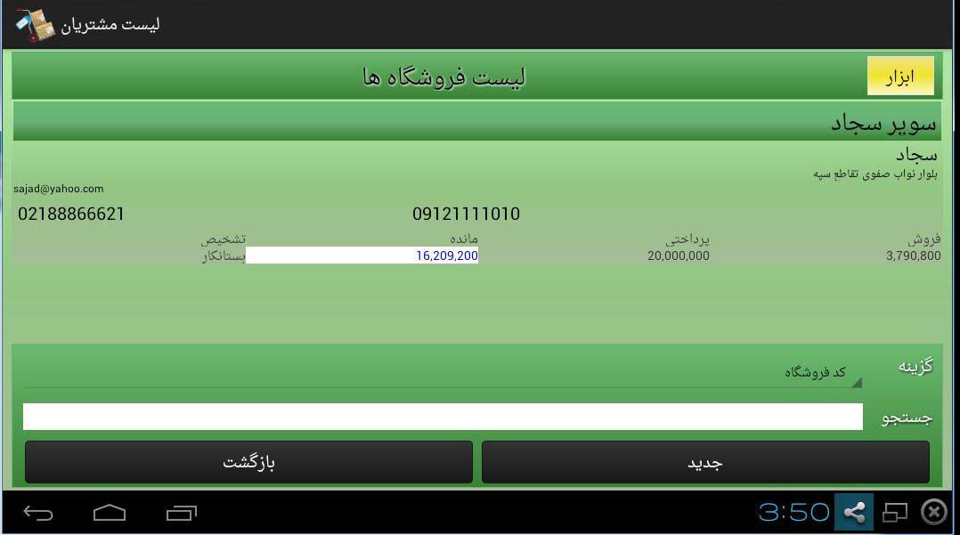 مي توان با انتخاب هر مشتري پرداختهاي وي را ثبت نمود.