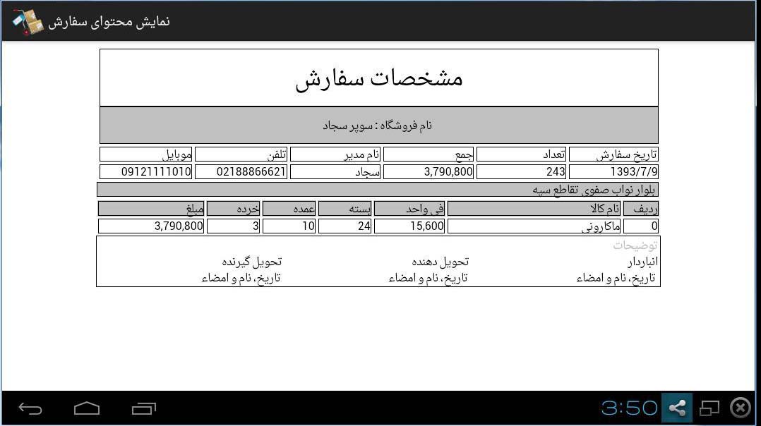 ذخيره آسان : پس از نوشتن تعداد و تعيين قيمت به محصول بعدي يا قبلي جارو كنيد. همزمان سفارش هم ثبت شده است