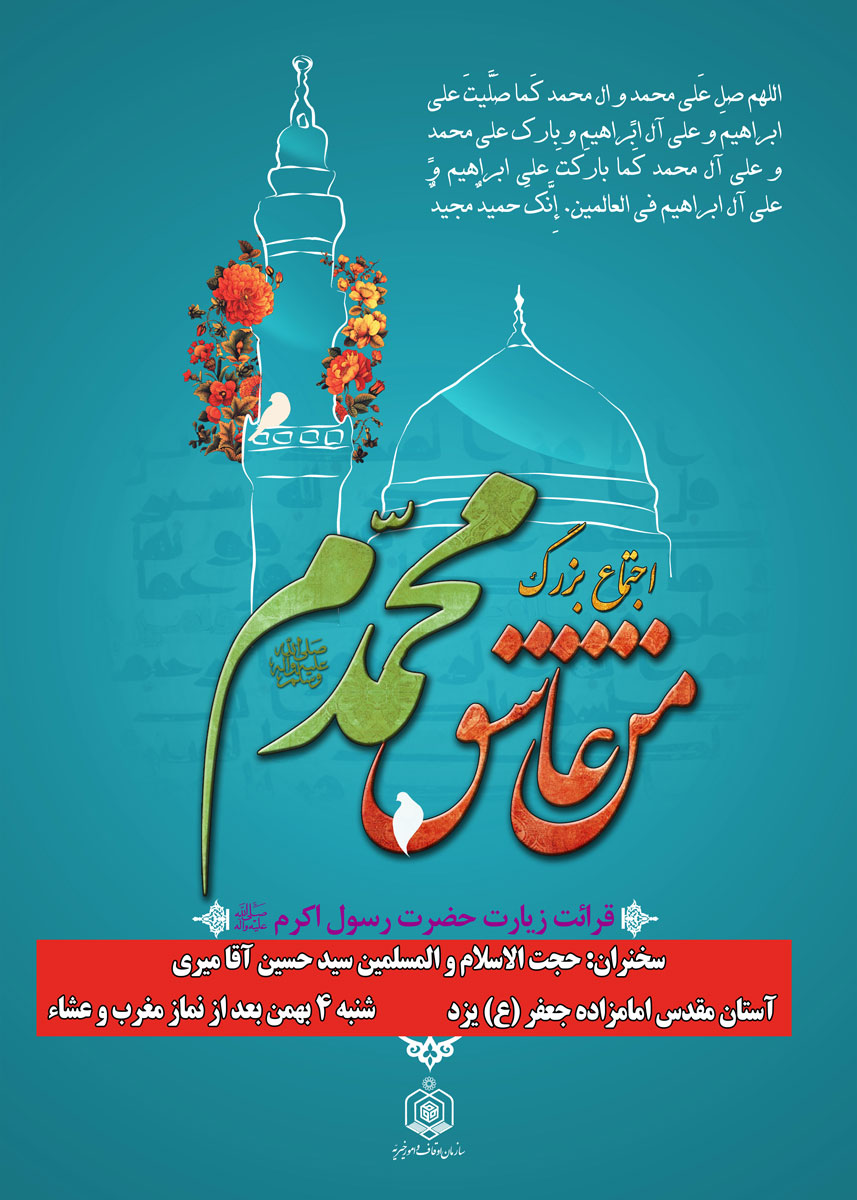 به گزارش روابط عمومی اداره کل اوقاف و امور خیریه استان یزد، حجت الاسلام محمود میرجلیلی در این رابطه اظهار داشت: هم زمان با شنبه 4 بهمن ماه اجتماع "من عاشق محمدم" در آستان مقدس امامزاده جعفر (ع) یزد برگزار خواهد شد.
