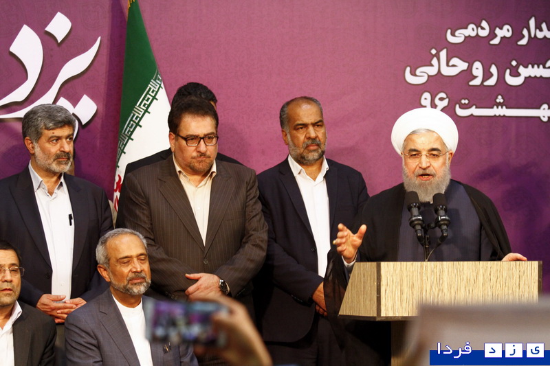 حسن روحانی نامزد دوازدهمین دوره انتخابات ریاست جمهوری در جریان سفر انتخاباتی خود به یزد با حامیان خود دیدار کرد.