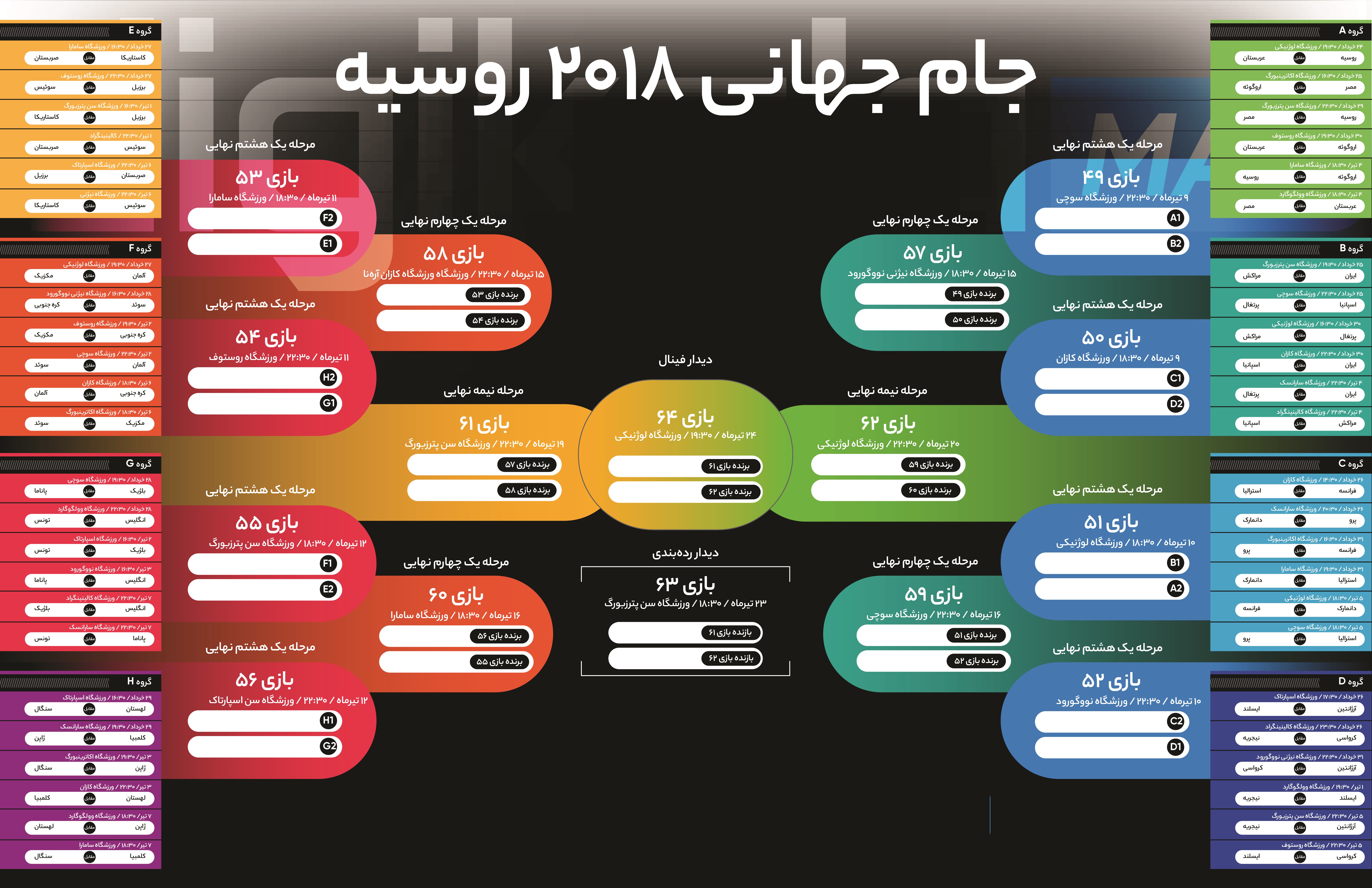 برنامه کامل مسابقات جام جهانی فوتبال 2018 روسیه +ساعت به وقت تهران