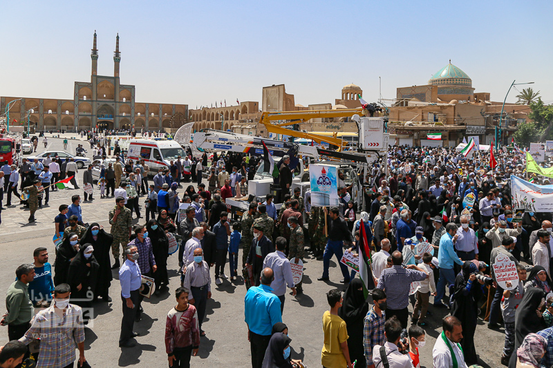 مردم شهید پرور و ولایتمدار یزد همزمان با سراسر کشور در حمایت از مردم مظلوم فلسطین و محکومیت اقدامات وحشیانه رژیم اشغالگر قدس به خیابانها آمدند.