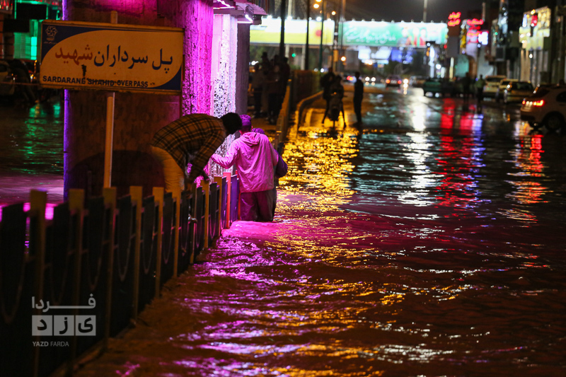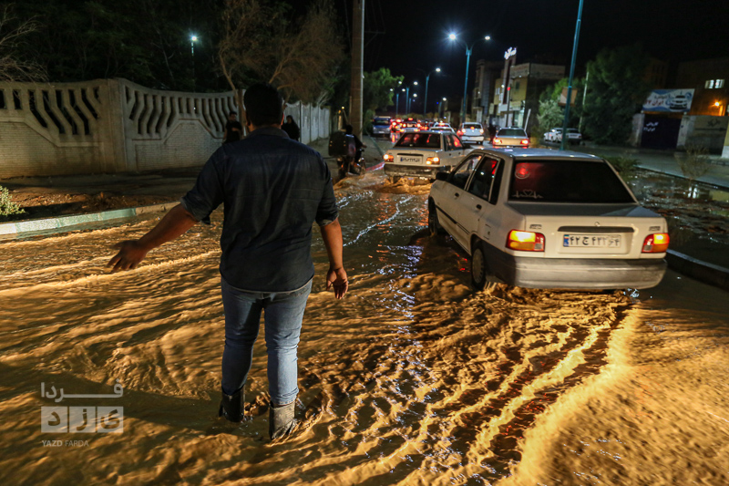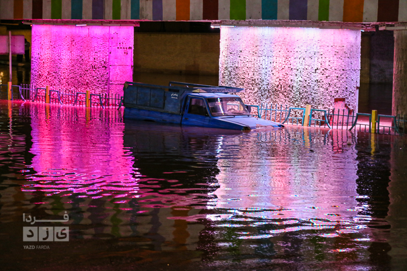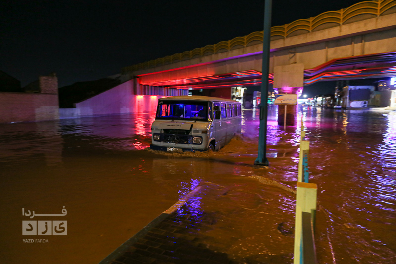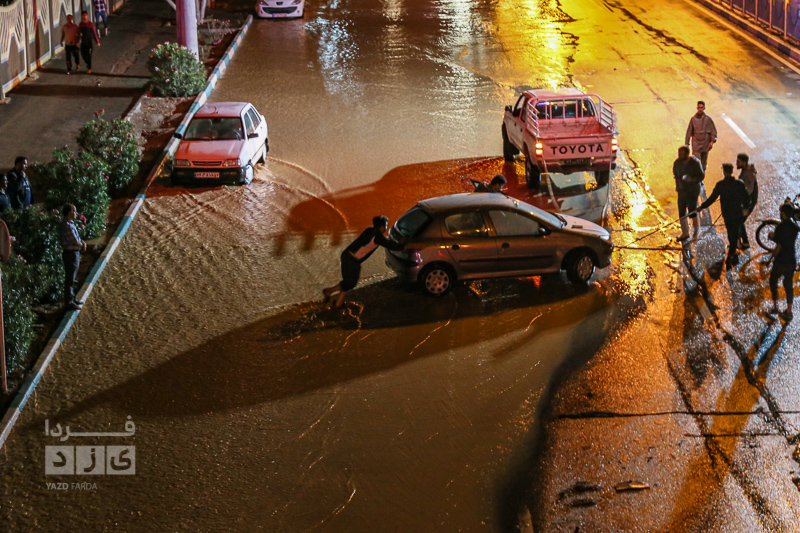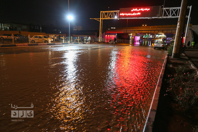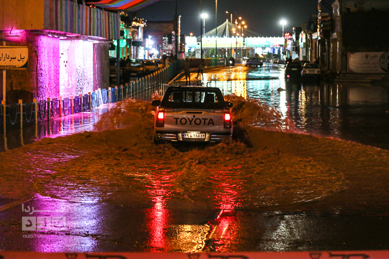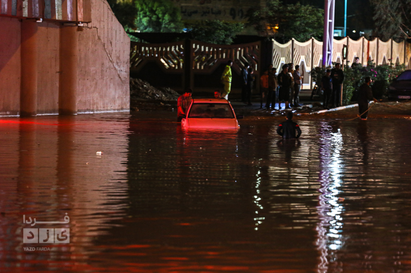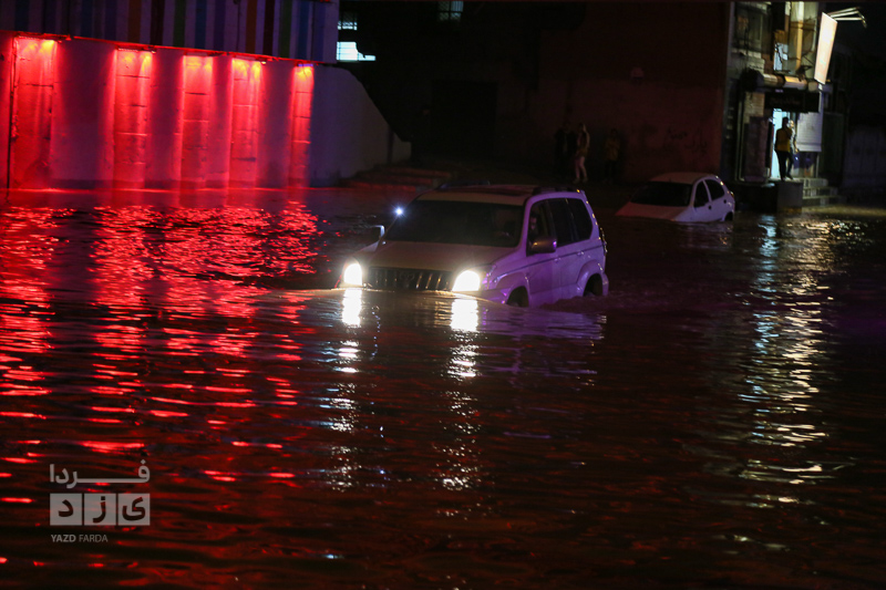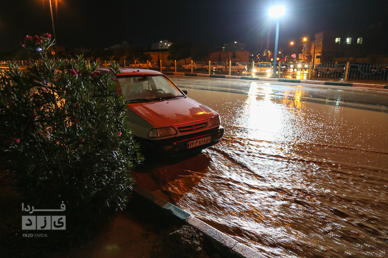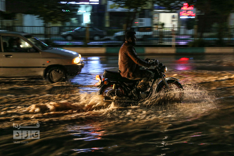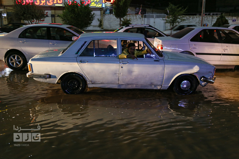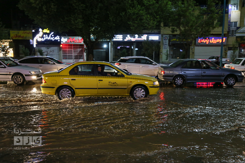 آبگرفتگی شدید معابرشهر یزد در پی بارش شدید باران