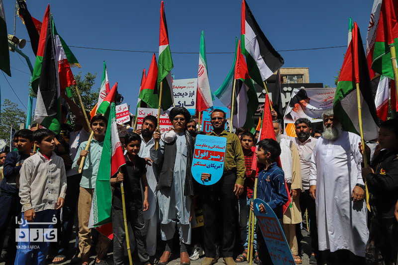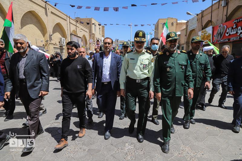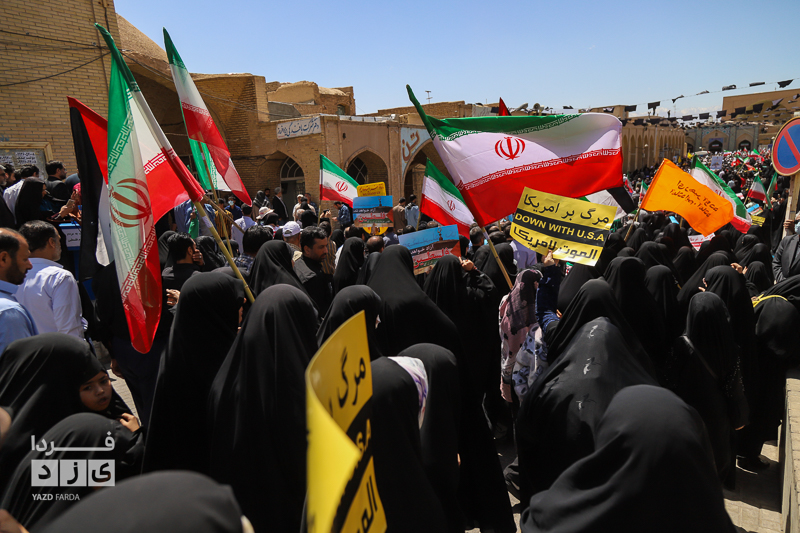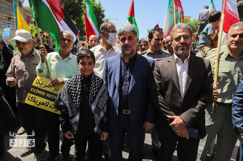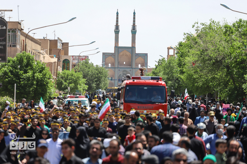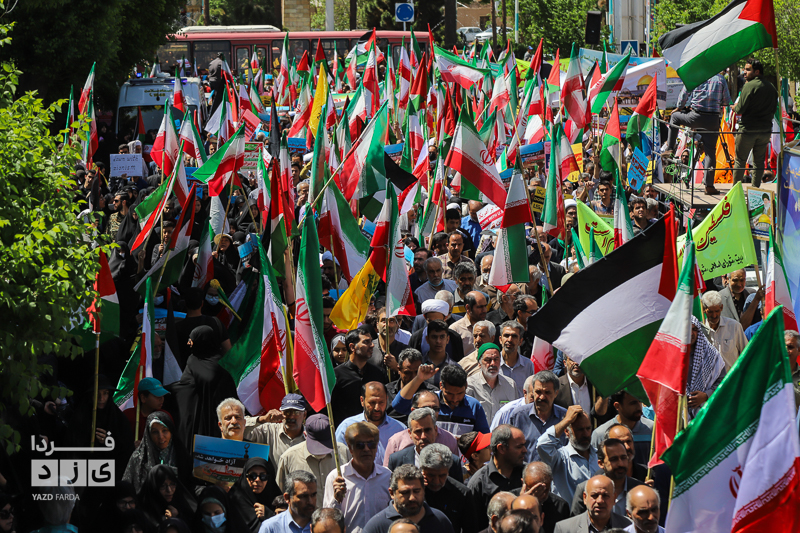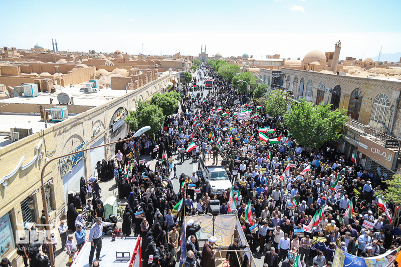 راهپیمایی روز جهانی قدس ظهر امروز جمعه با حضور گسترده مردم از میدان شهید بهشتی تا مسجد ملااسماعیل یزد (نماز جمعه) برگزار شد.