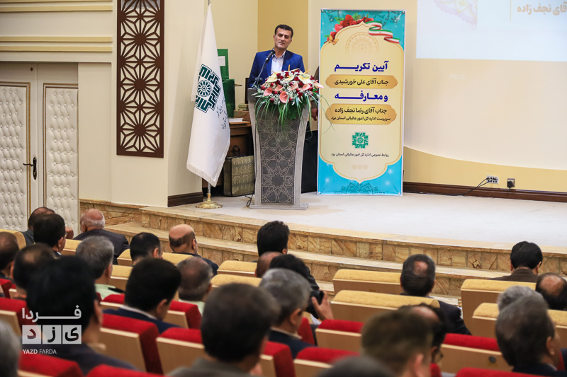 مراسم تقدیر و تکریم از زحمات و خدمات علی خورشیدی و معارفه رضا نجف زاده بعنوان سرپرست اداره امور مالیاتی استان صبح روز (شنبه) 23 اردیبهشت با حضور رحمان پلیمی معاون توسعه مدیریت و منابع سازمان امور مالیاتی کشور و همچنین سید مسعود عظیمی معاون هماهنگی امور اقتصادی استاندار یزد برگزارشد.