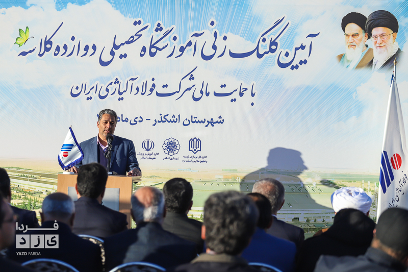 مراسم کلنگ زنی آموزشگاه دوازده کلاسه شهرستان اشکذر با حمایت مالی شرکت فولاد آلیاژی