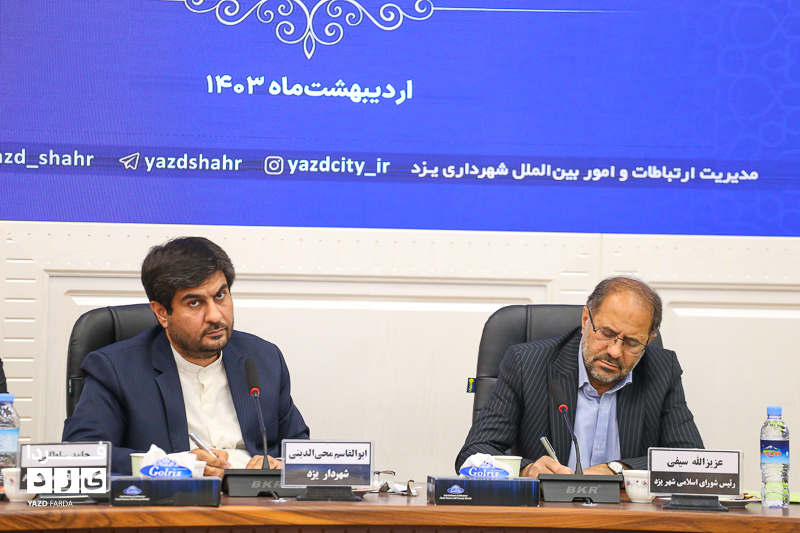 نشست خبری «ابوالقاسم محی الدینی» شهردار و «عزیزالله سیفی» رئیس شورای اسلامی شهر یزد روز شنبه ۲۹ اردیبهشت ماه با حضور خبرنگاران و اصحاب رسانه در محل سالن انقلاب اسلامی منطقه سه شهرداری برگزار شد.