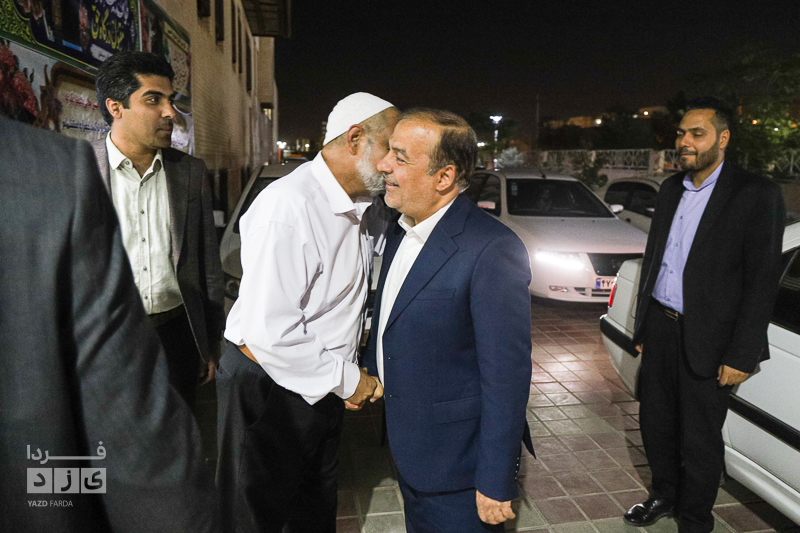 حضور استاندار یزد و هیئت همراه در منزل حاج حسین جلالی و بازدید از پایگاه خبری یزدفردا